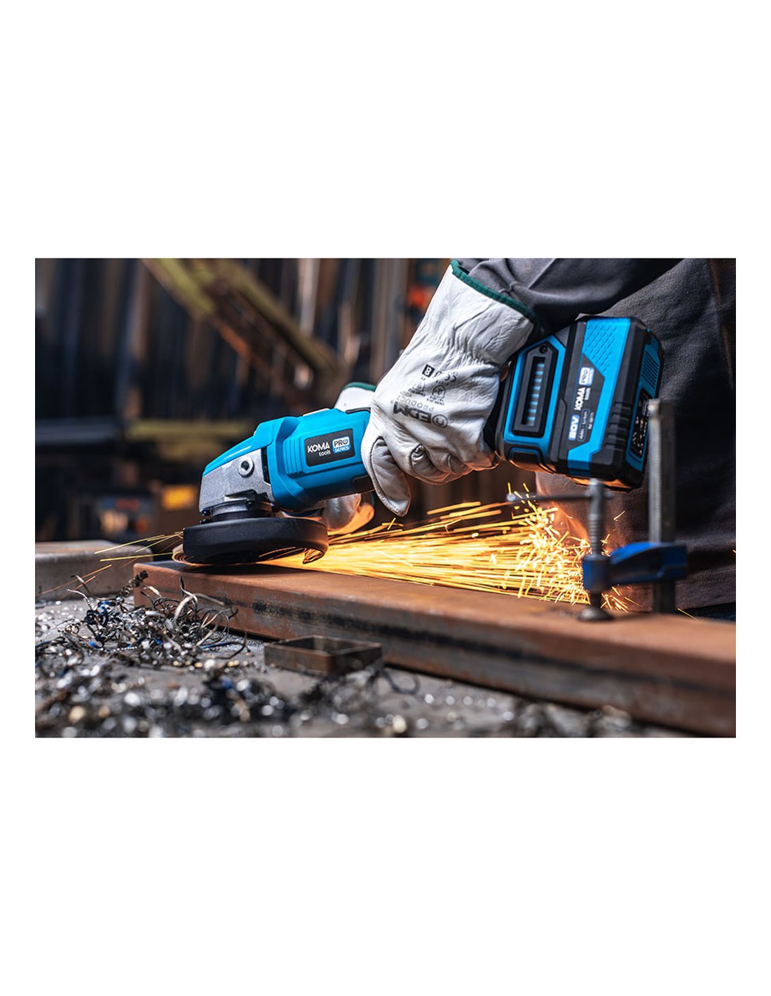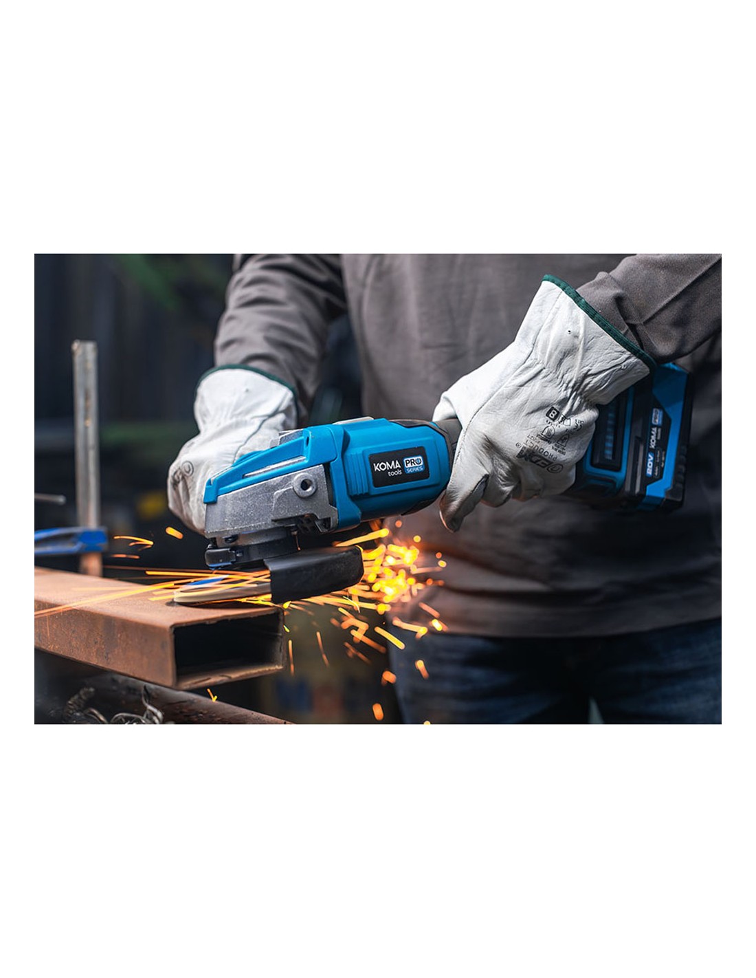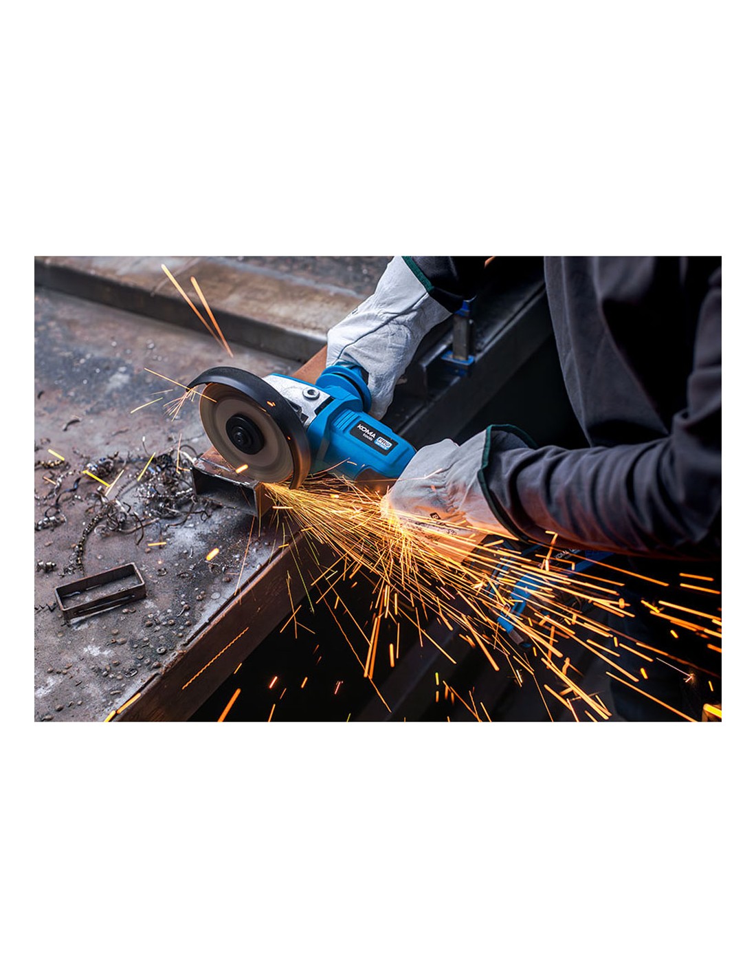 Amoladora potencia: 20 v li-ion brushless (sin escobillas). no incluye bateria y cargador. 8500rpm. protector para disco de ø125mm (disco no incluido). interruptor de seguridad. para un funcionamiento optimo de este artículo se aconseja utilizar una batería ref. 08771 accesorios: mango adicional + 1 llave para cambiar el disco. 20v-amb, dimensiones: 37,5 x 12 cm