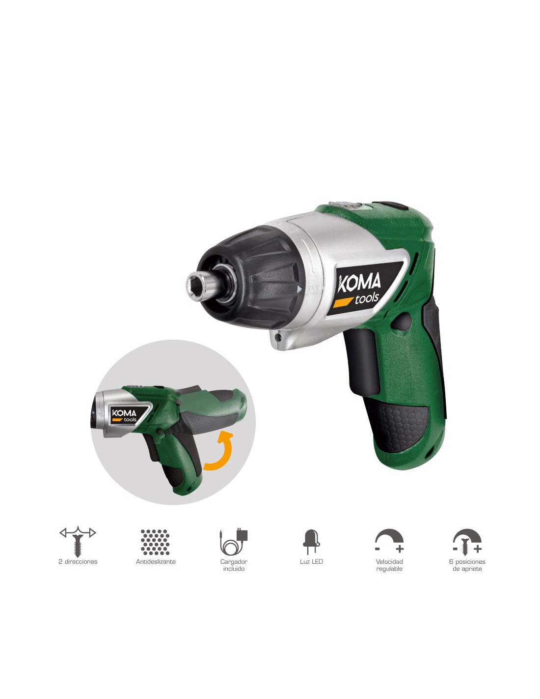 Atornillador a bateria 3,6v litio 1300mah. reversible, mango antideslizante, cargador incluido, luz led, velocidad regulable, 6 posiciones de apriete, 3v-ar, 175 x 148 mm