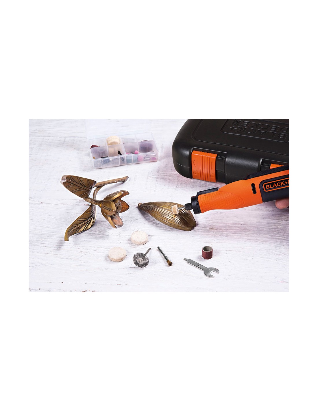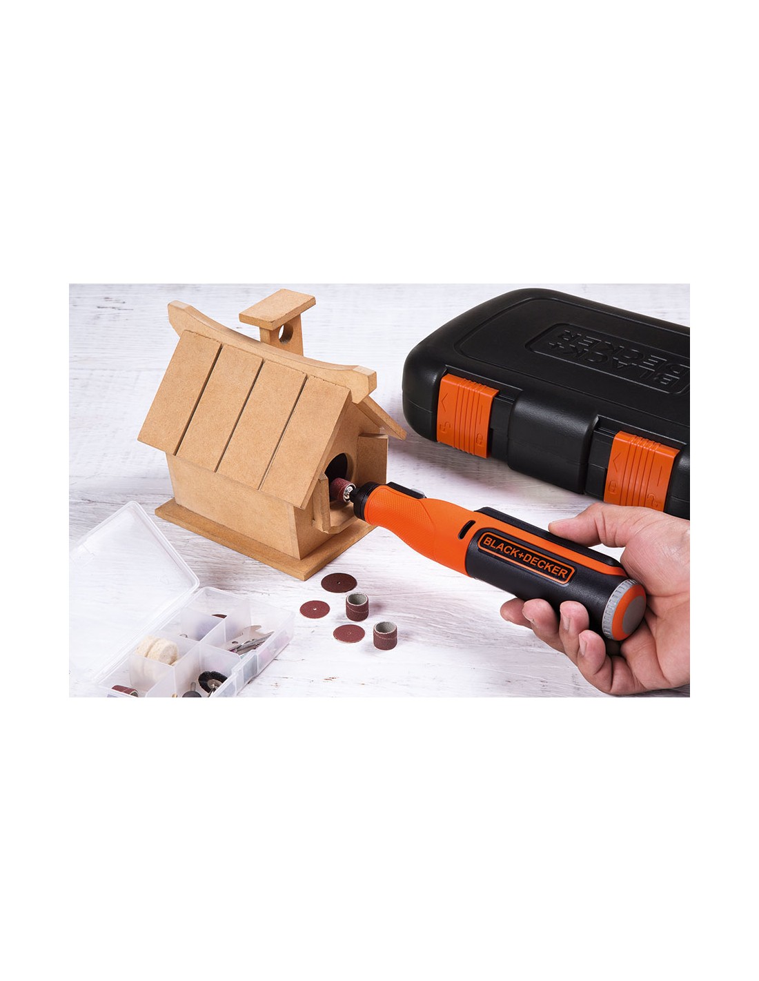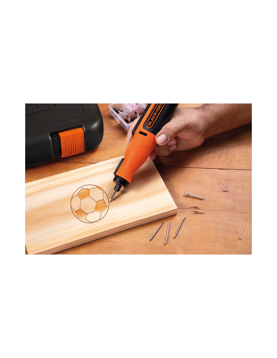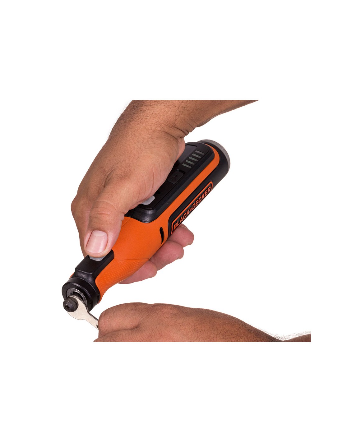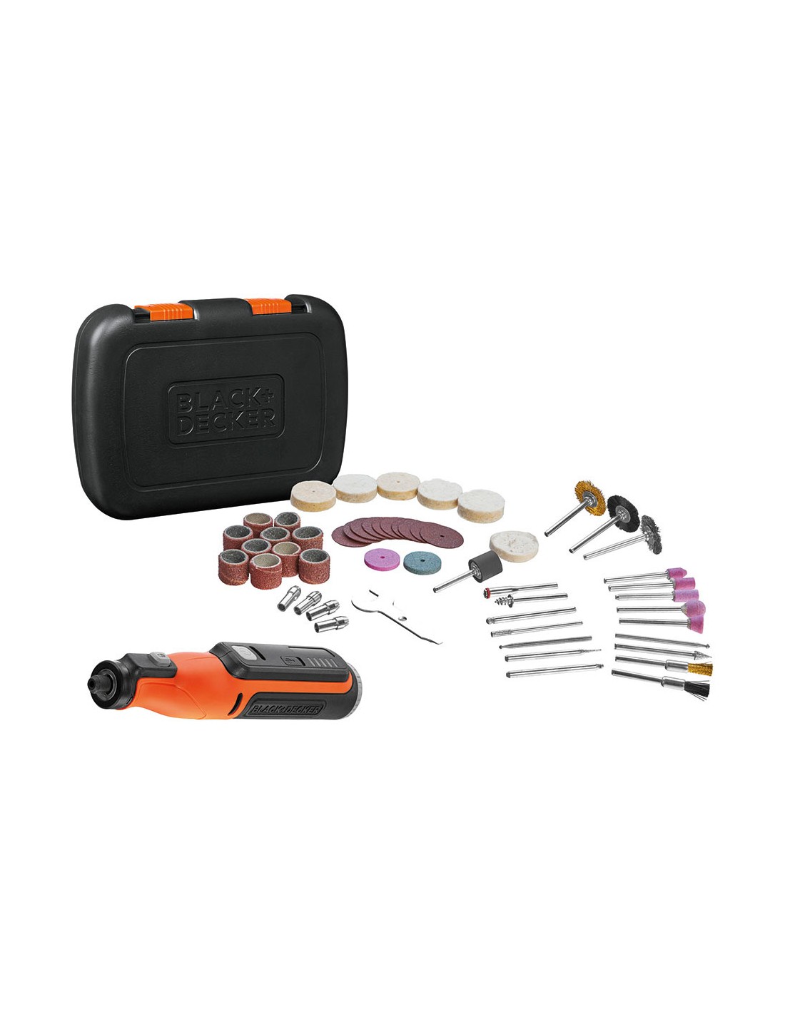 Multi-herramienta rotativa 7,2v bcrt8ik-xj black+decker. velocidad variable 3.500-29.500rpm, batería integrada de 1,5ah. incluye 53 accesorios, cable de carga usb y estuche de transporte. accesorios para: perforar, lijar, pulir, cortar, detallar y grabar. sin cable. control de velocidad variable. luz led para iluminacion del area de trabajo.