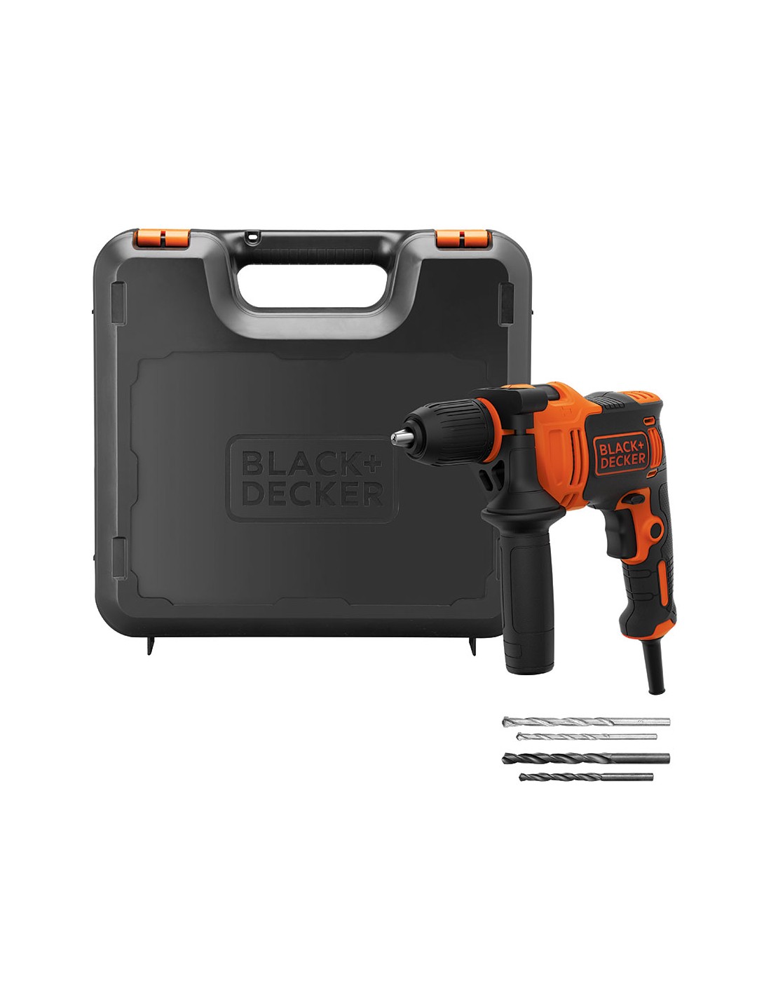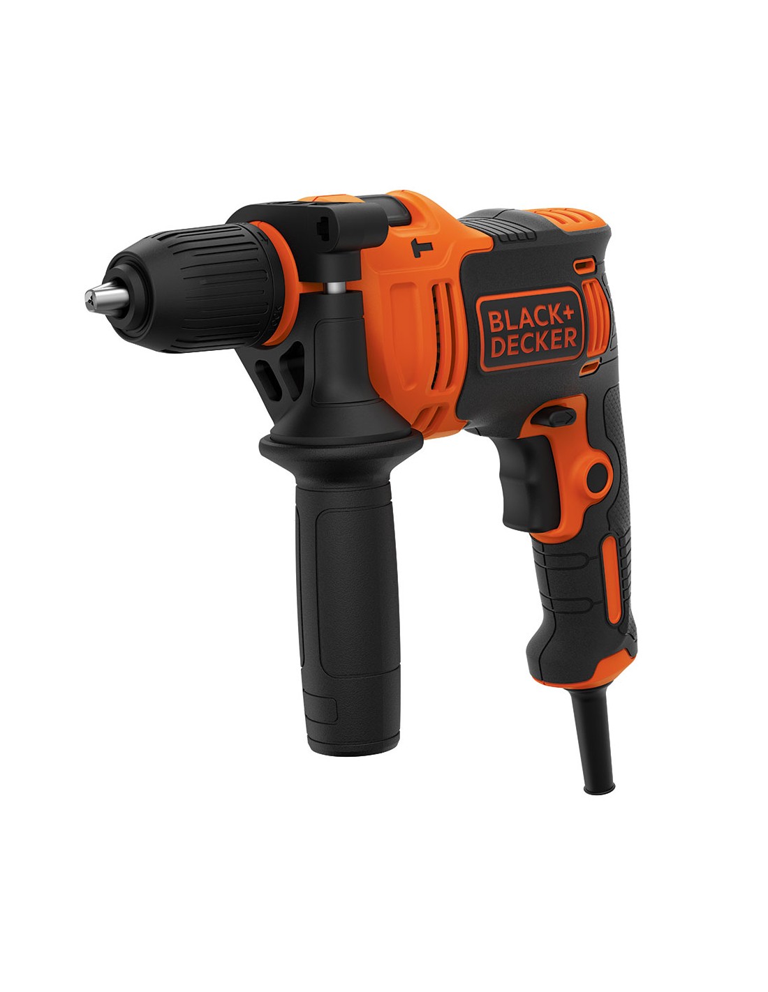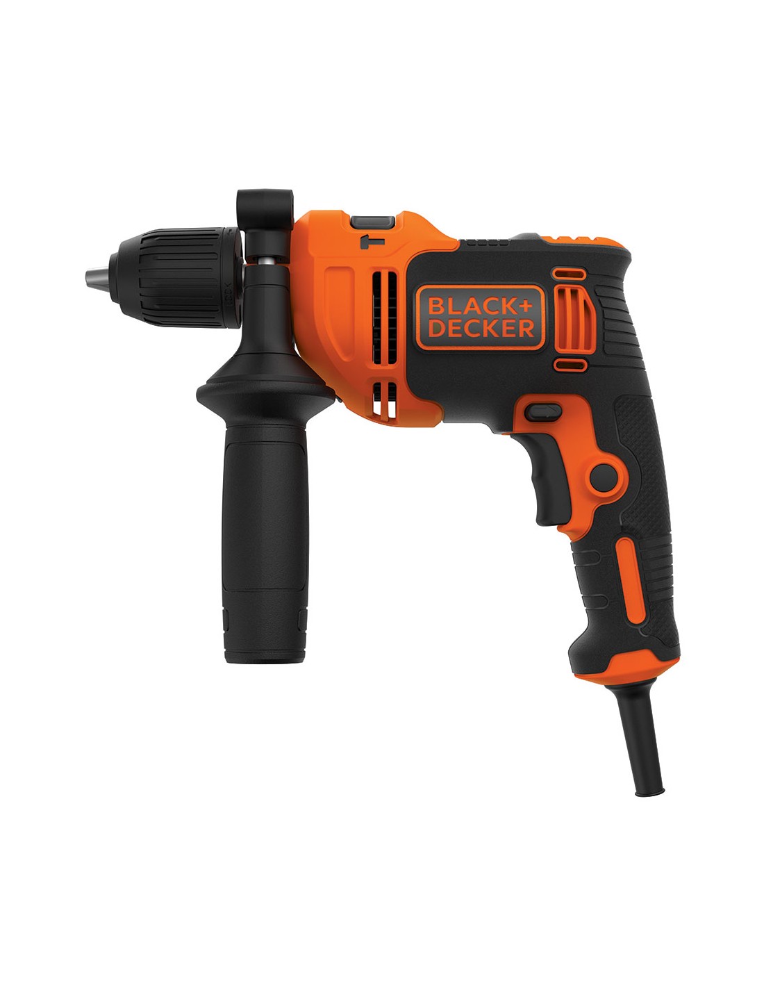 Taladro percutor 710w. black+decker su accion percutora de hasta 47.600ipm es perfecta para tareas exigentes de perforacion en mamposteria. motor de velocidad electronica y variable, de hasta 2800rpm, que facilita un arranque lento para una mayor precision y una empuñadura lateral multi-posicion para una manejo mas facil de la herramienta. con cable de 3m. tamaño de portabrocas: 13mm. capacidad de taladrado (madera) 25mm, (acero) 13mm. (hormigon) 13mm. maletin de transporte. 220-240v