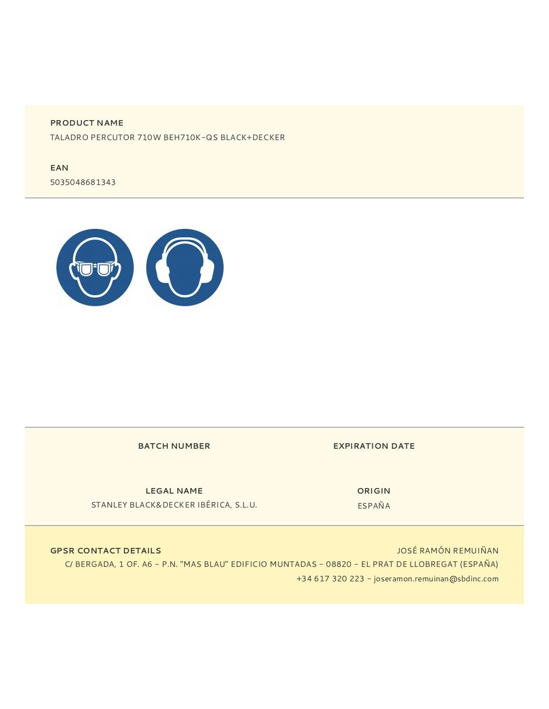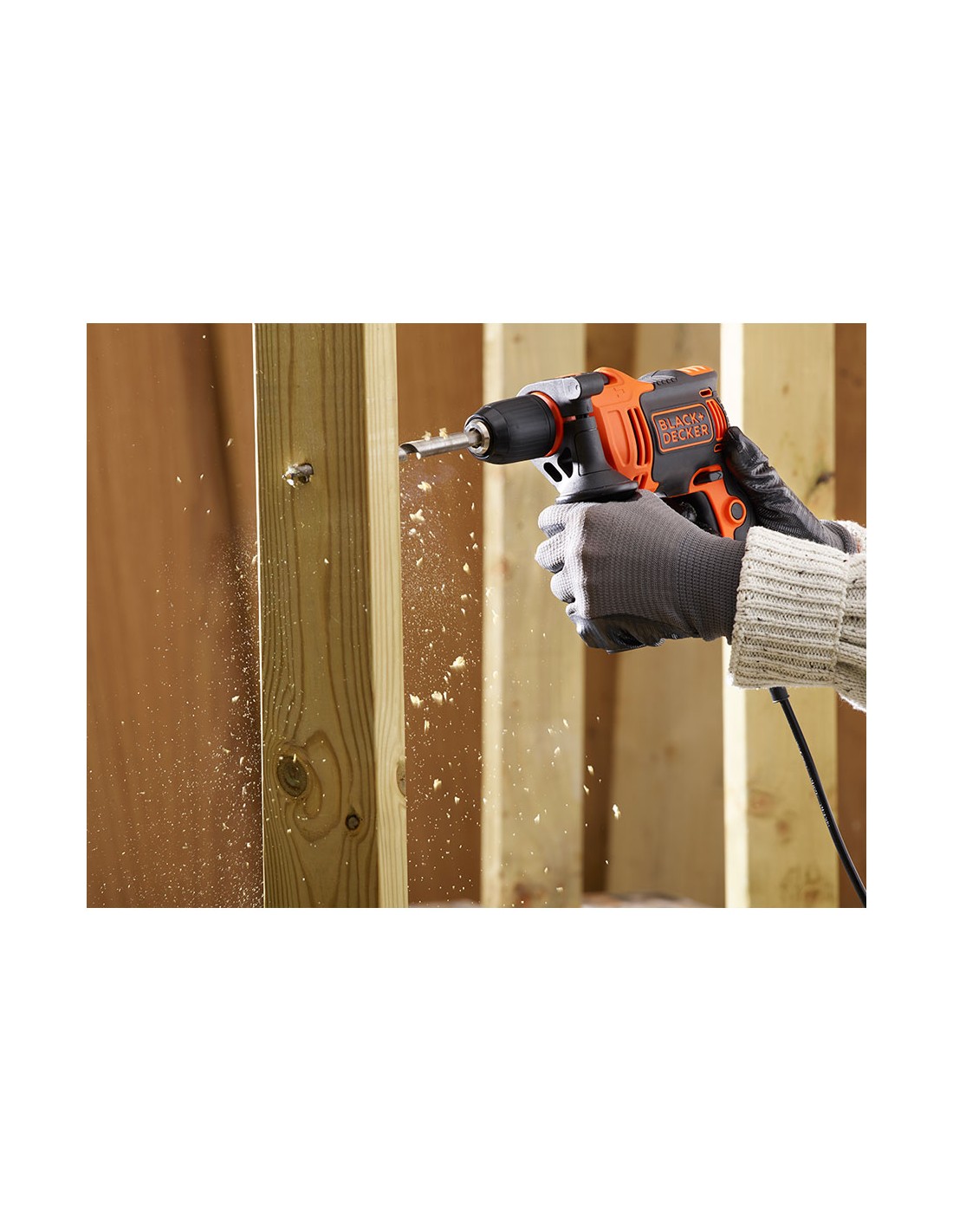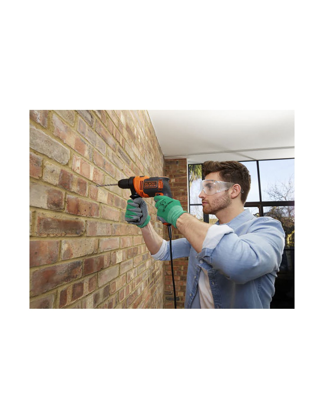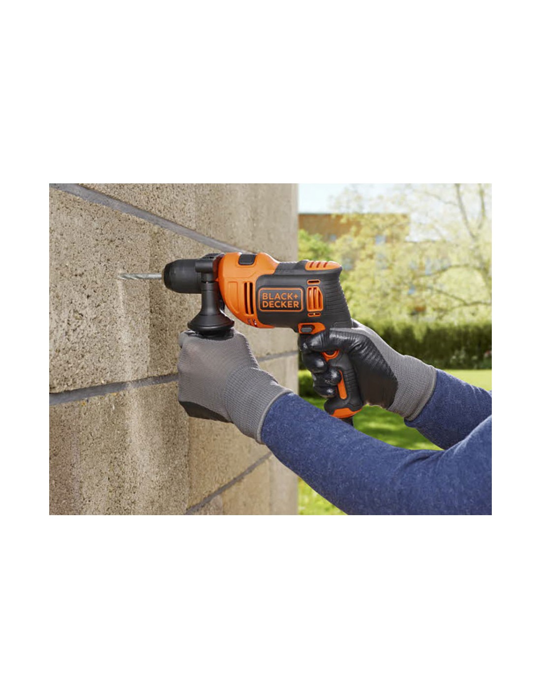 Taladro percutor 710w. black+decker su accion percutora de hasta 47.600ipm es perfecta para tareas exigentes de perforacion en mamposteria. motor de velocidad electronica y variable, de hasta 2800rpm, que facilita un arranque lento para una mayor precision y una empuñadura lateral multi-posicion para una manejo mas facil de la herramienta. con cable de 3m. tamaño de portabrocas: 13mm. capacidad de taladrado (madera) 25mm, (acero) 13mm. (hormigon) 13mm. maletin de transporte. 220-240v