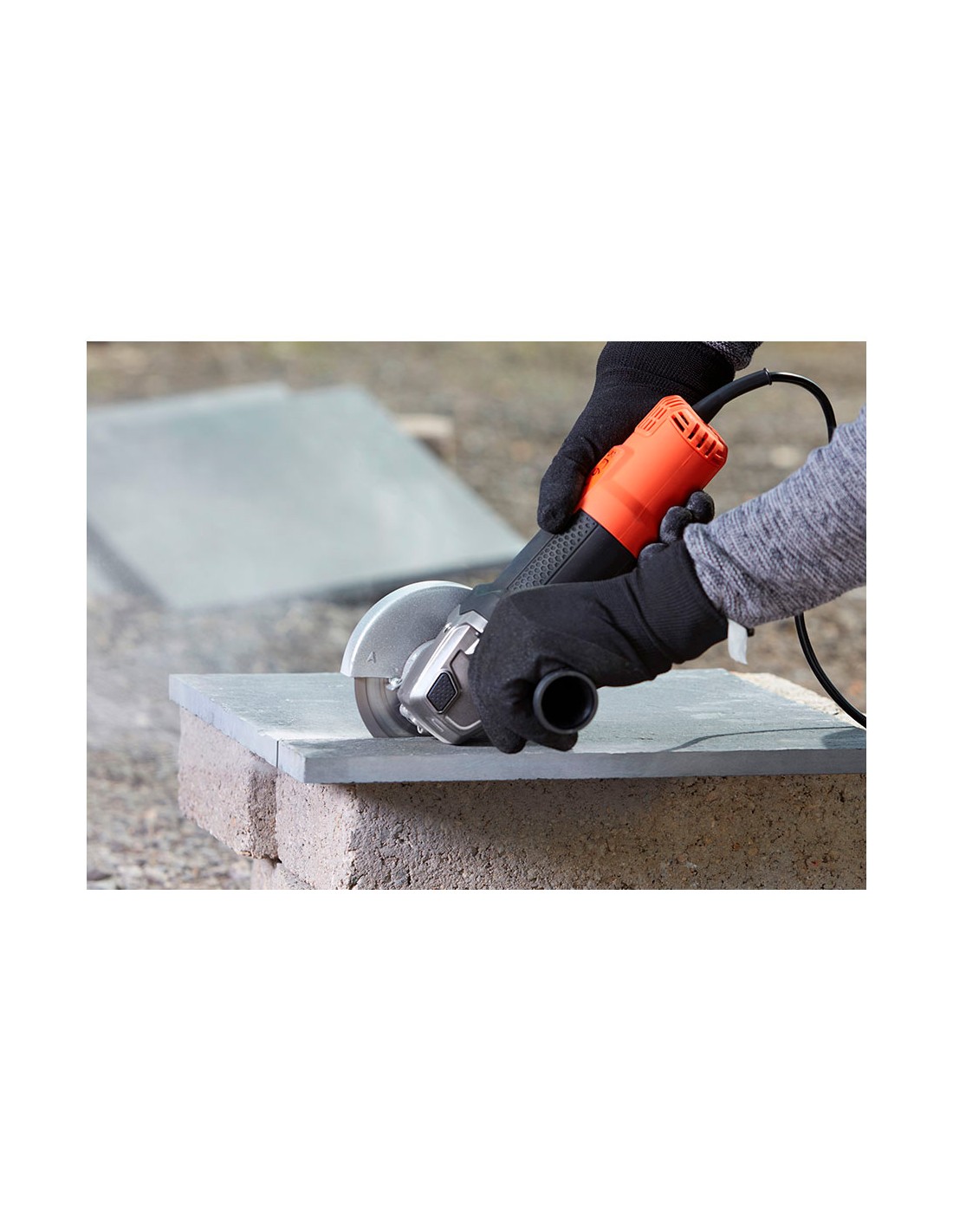 Mini-amoladora 900w beg210-qs black+decker. disco: ø115mm, velocidad 12.000rpm, tamaño del eje m14, protección contra rearranque y arranque suave. cable de 2m. incluye empuñadura lateral 3 posiciones. 98db. 230v