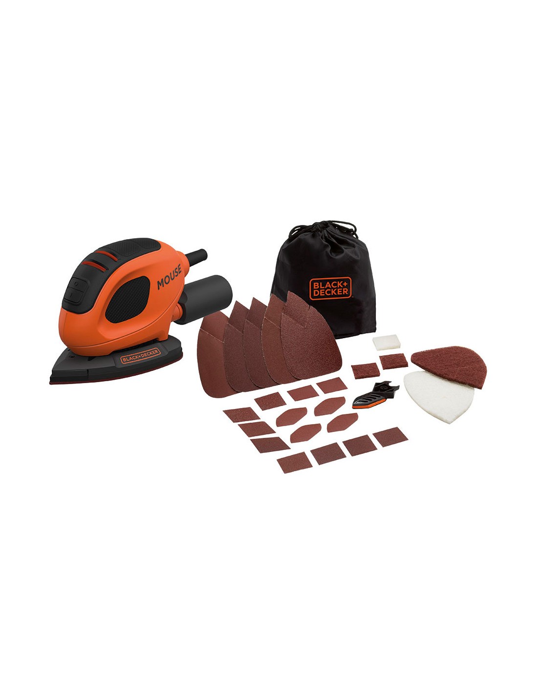 Lijadora de detalle mouse 55w bew230bc-qs black+decker. velocidad 11.000rpm. òrbita ø1,5mm. diseño ligero, compacto y ergonómico. permite lijar en los espacios más reducidos y difíciles de alcanzar, con mayor control. esta lijadora es ideal para retirar pintura y óxido, limpiar vidrio. base de lijado con velcro para colocar y retirar las hojas de lija de forma fácil y sencilla. incluye hojas de lija. 230v