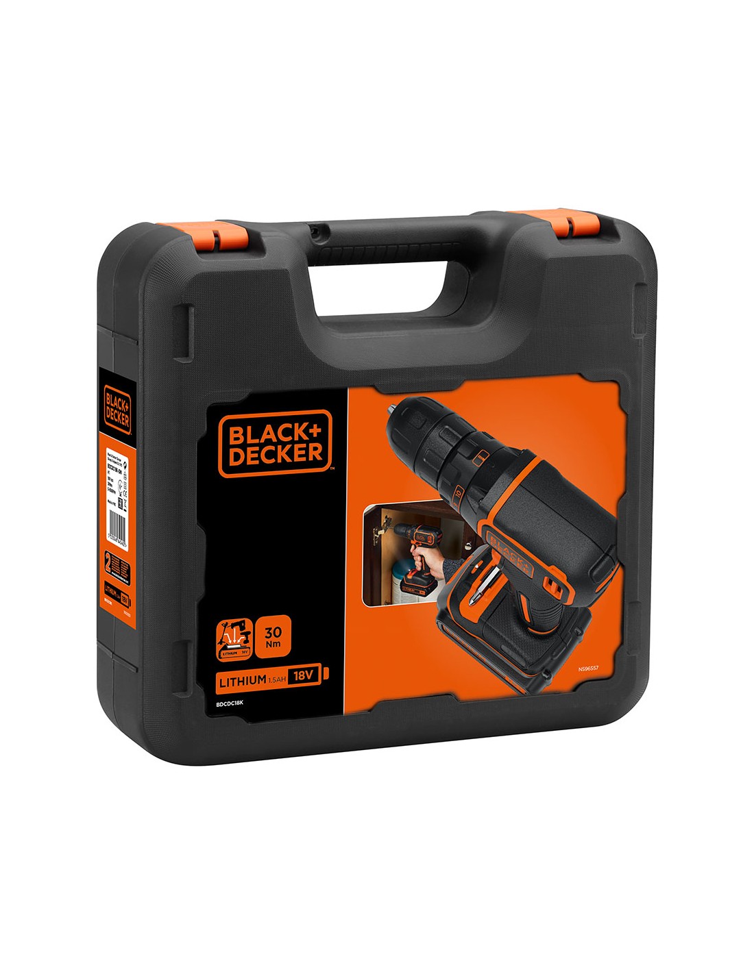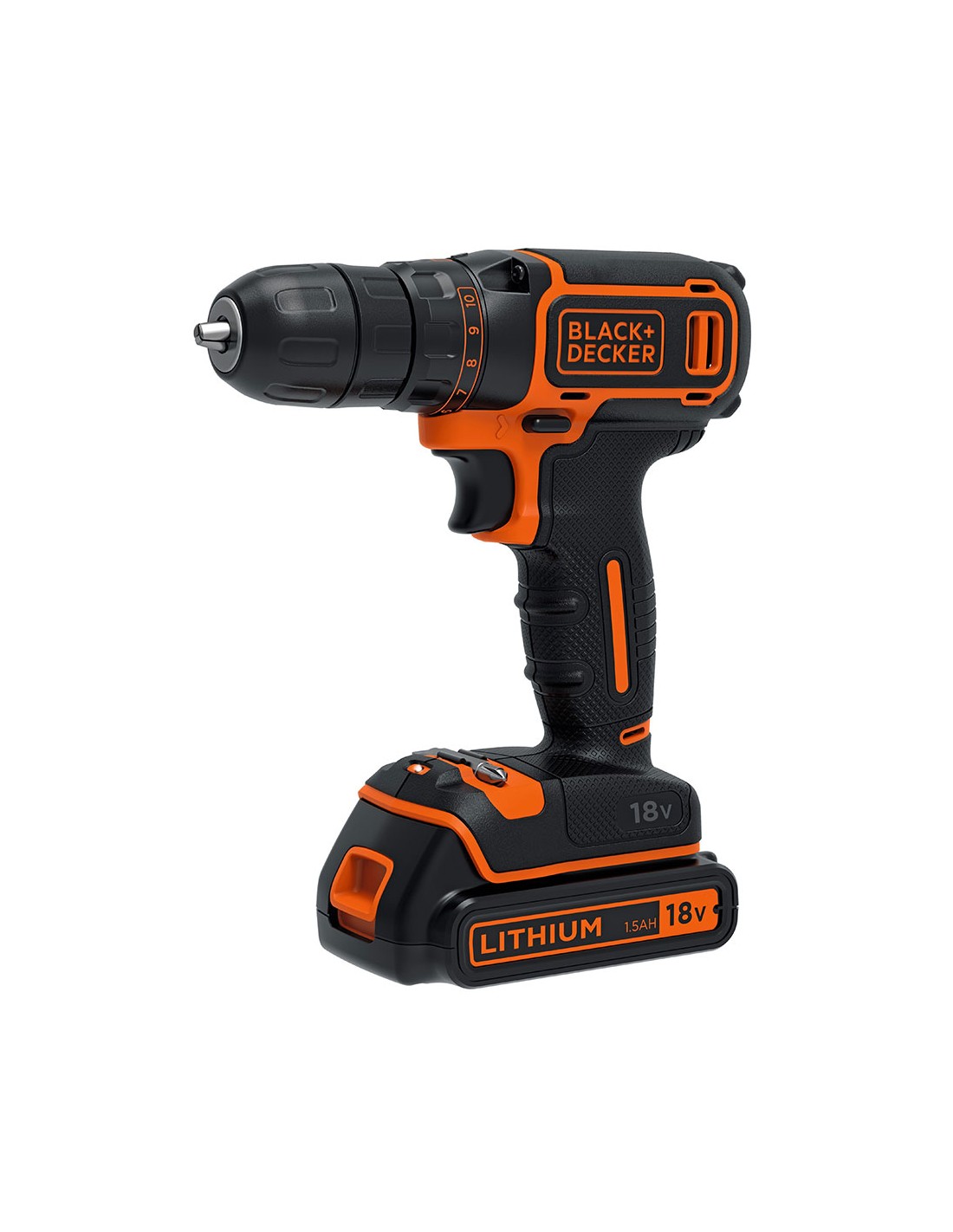 Taladro atornillador 18v black+decker 1,5a. funcion reversible. portabrocas 10mm. capacidad de taladrado: (madera) 25mm (acero) 10mm. velocidad: 0-650rpm. incluye cargador. bateria de litio. tiempo de carga 3h. compacto y ligero. bateria de litio. con maletin de transporte.