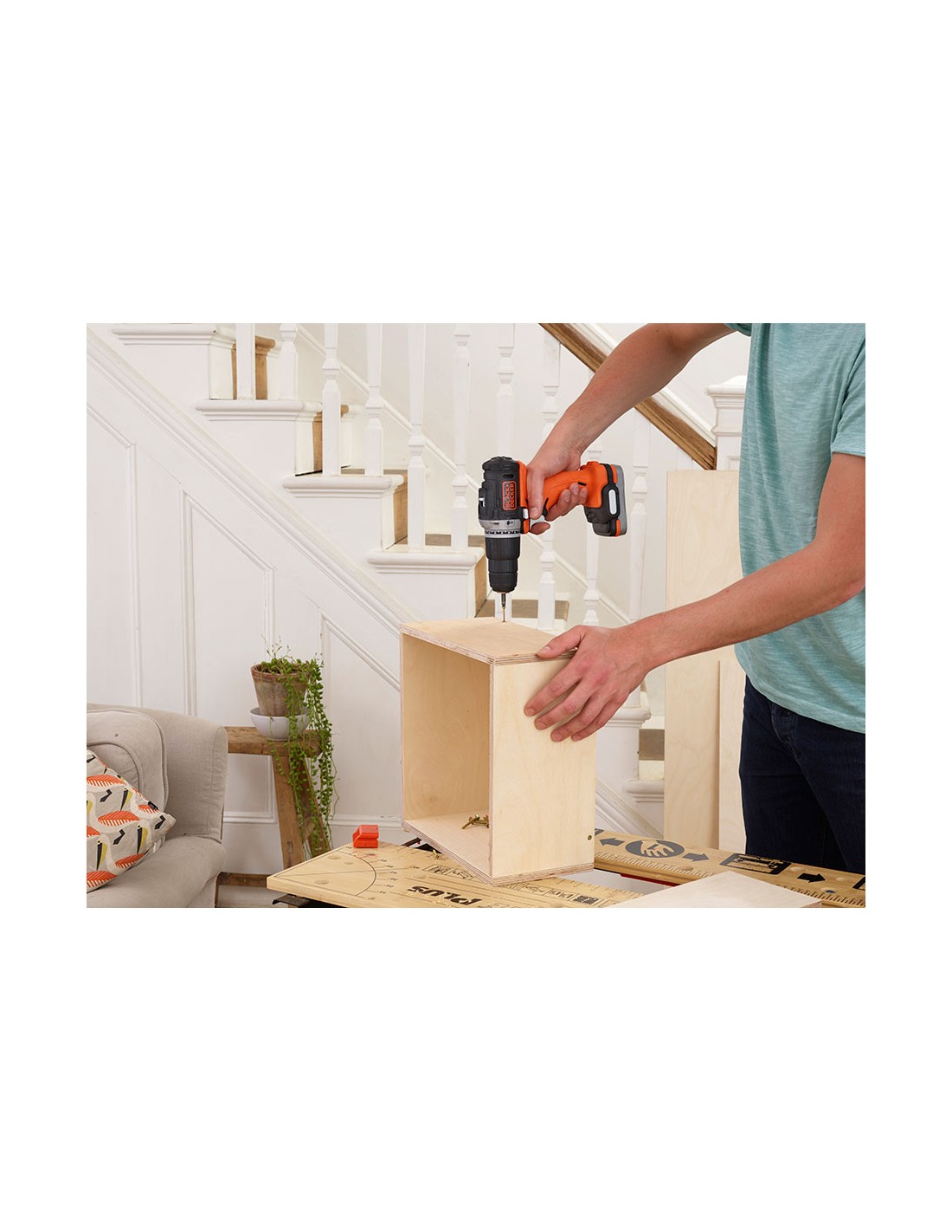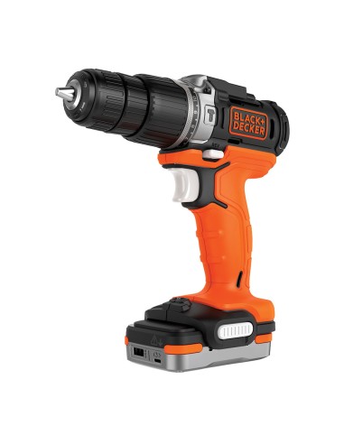 Taladro percutor. potencia: 12v black+decker. bdchd12s1-xj. 1,5a. 21250ipm. funcion reversible. portabrocas 10mm. velocidad: 0-1350rpm. luz led de iluminacion del punto de trabajo. bateria de litio. mango ergonomico de tacto suave.