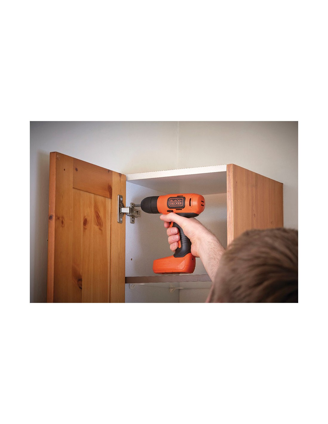 Taladro atornillador ultra compacto. potencia: 7,2v bdcd8-qw black+decker.1,5a 12nm funcion reversible. portabrocas 10mm. max. capacidad de taladrado: (madera) 20mm, (acero) 10mm. velocidad 400rpm. incluye cargador micro-usb. carga en 3h. ultra compacto y ligero. luz led indicador de carga. bateria de litio.