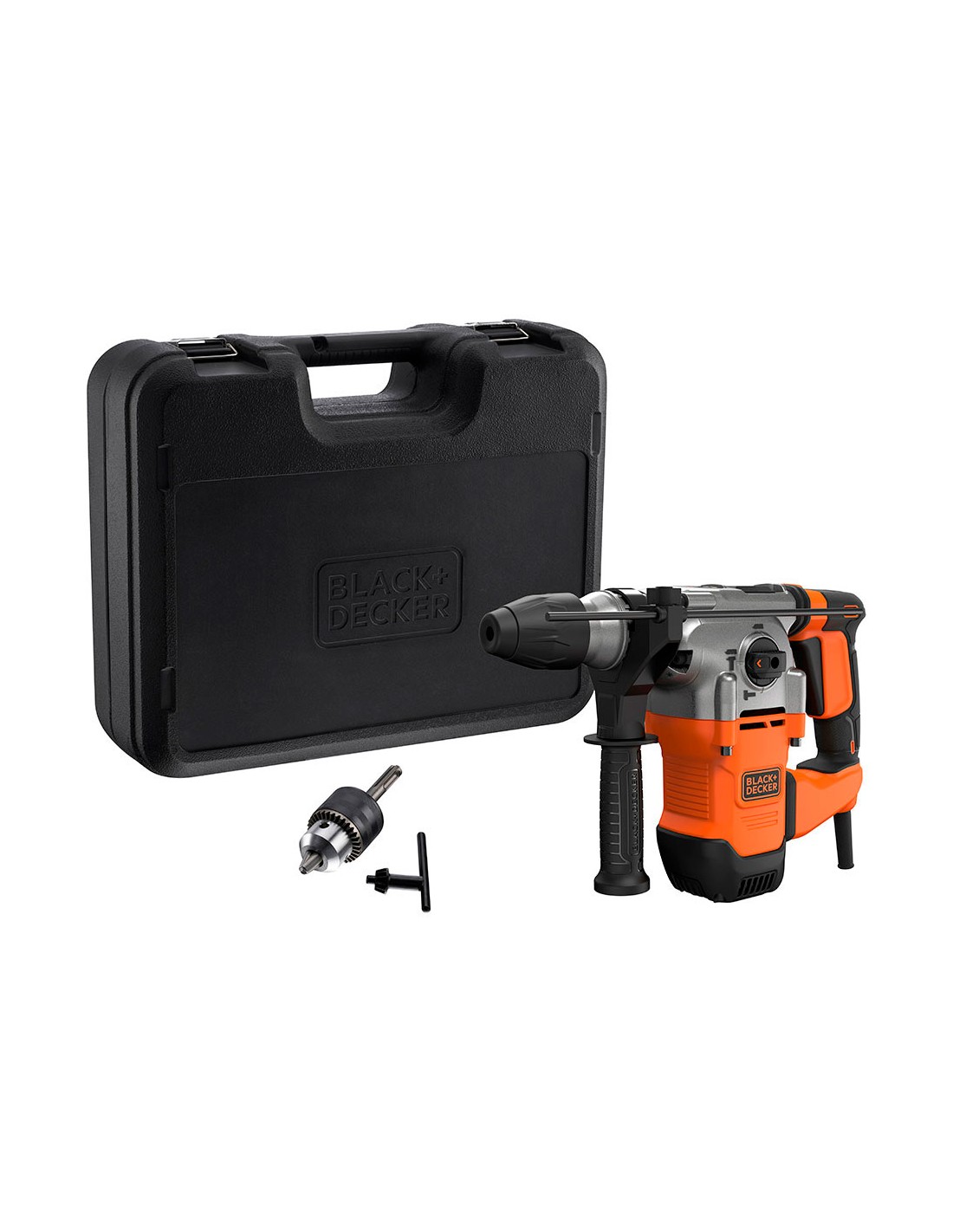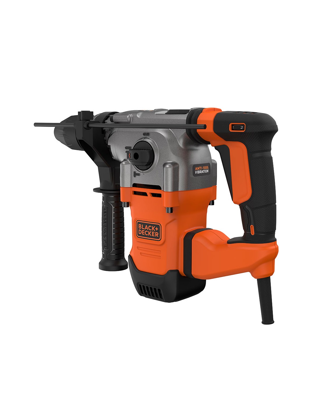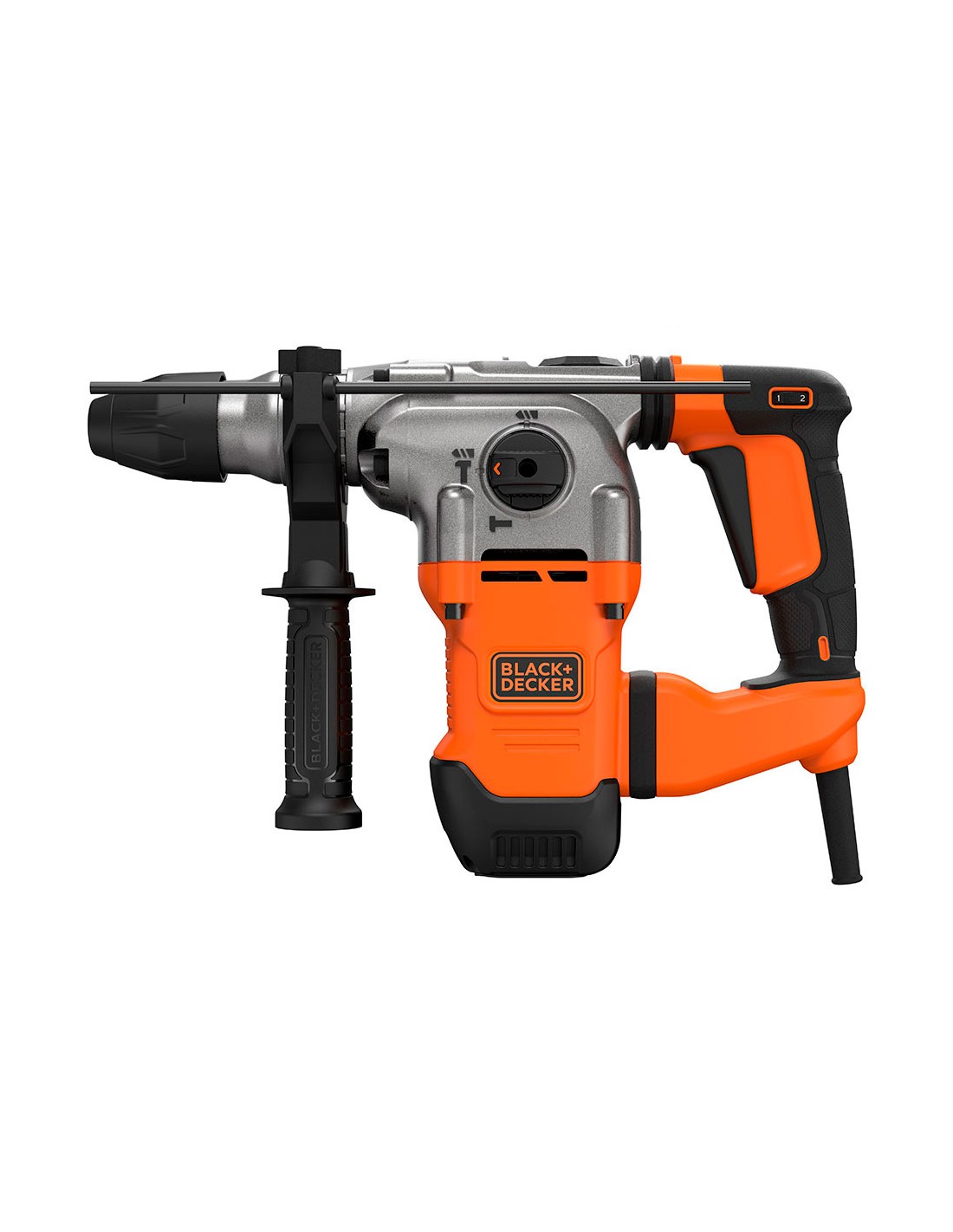 Martillo sds-plus 1250w black+decker. 3 modos, velocidad 0-900rpm, 0-3900ipm. cable 2m. reversible. cap. máxima: (hormigón) 32mm, sistema anti-vibración. incluye adaptador para brocas. portabrocas 13mm. con llave. empuñadura lateral y maletín. 230v