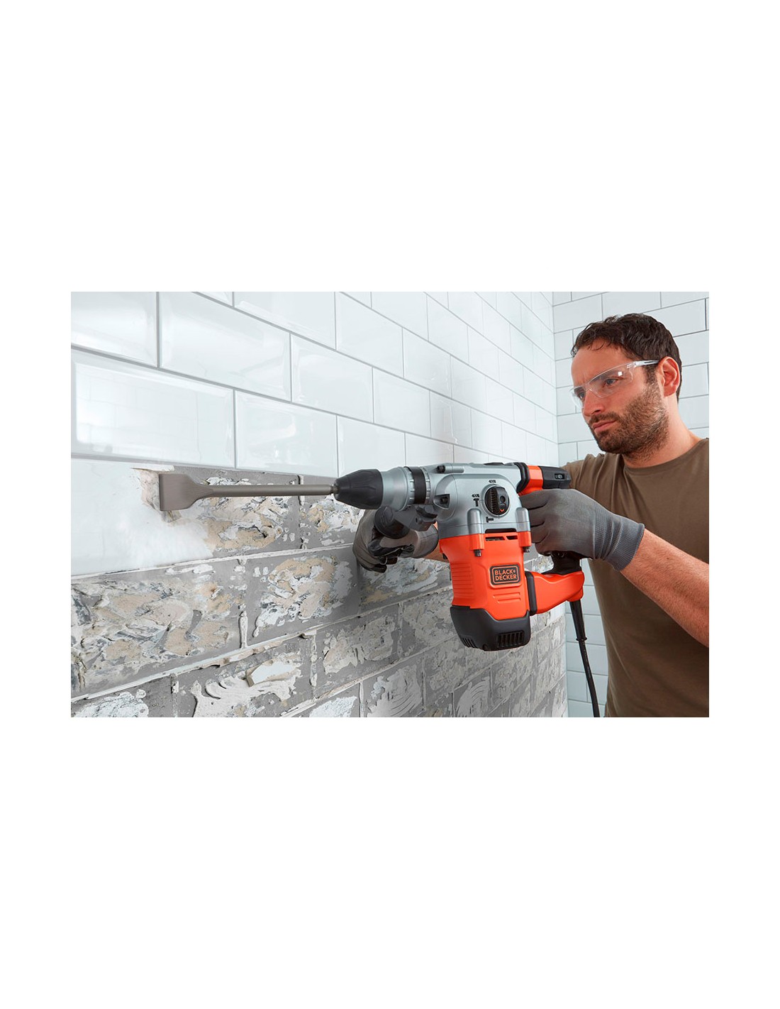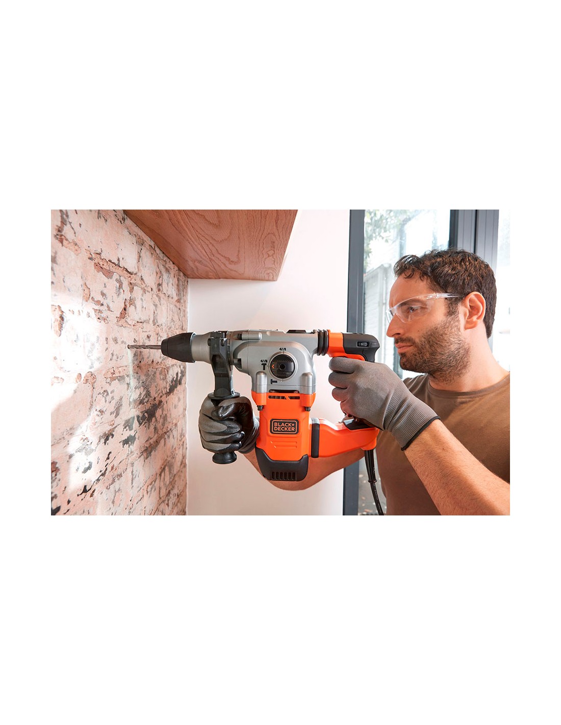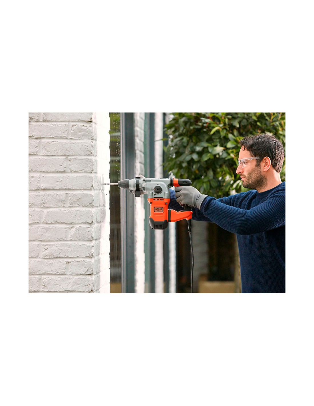 Martillo sds-plus 1250w black+decker. 3 modos, velocidad 0-900rpm, 0-3900ipm. cable 2m. reversible. cap. máxima: (hormigón) 32mm, sistema anti-vibración. incluye adaptador para brocas. portabrocas 13mm. con llave. empuñadura lateral y maletín. 230v