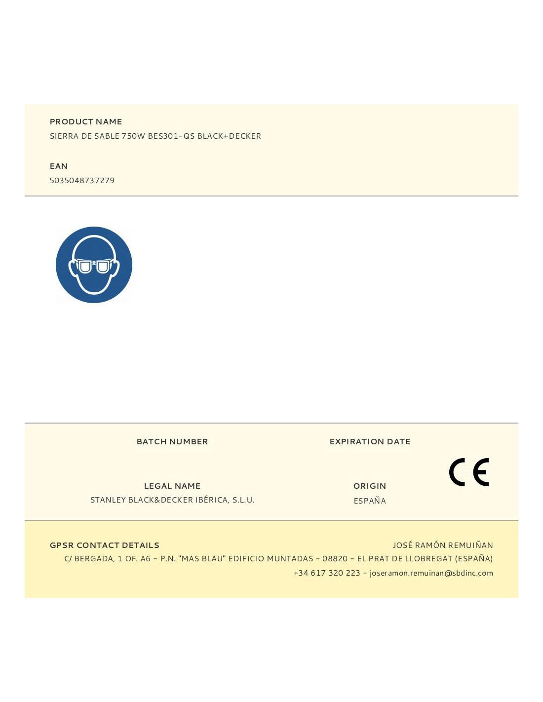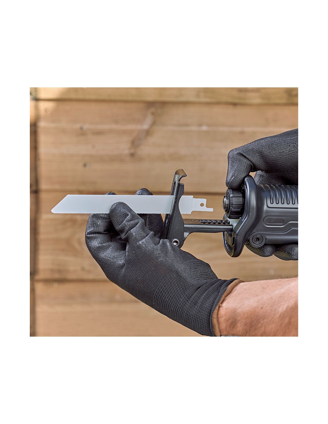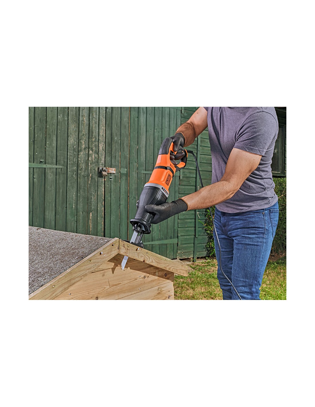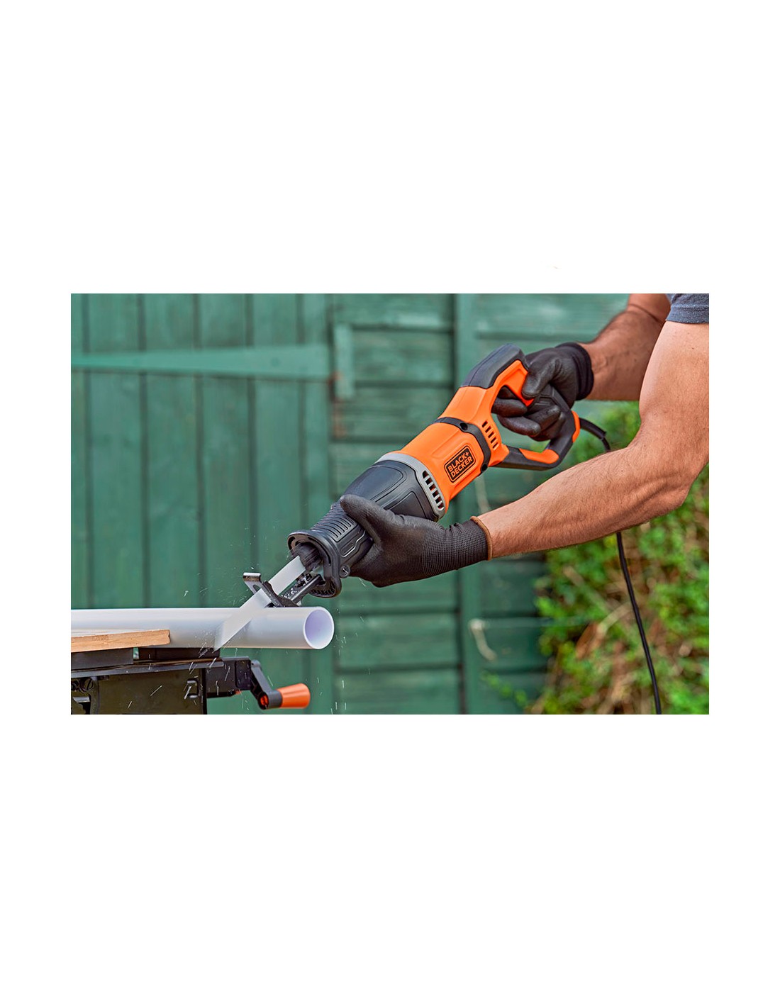 Sierra de sable 750w bes301-qs black+decker. velocidad variable. 0-2800rpm, longitud de carrera 20mm, capacidad máxima de corte (madera) 150mm, capacidad máxima de corte (metal) 10mm, sistema de cambio rápido de la hoja. incluye 1 hoja de sierra para madera, 1 hoja de sierra para metal y soporte para ramas extraible. con cable. 230v