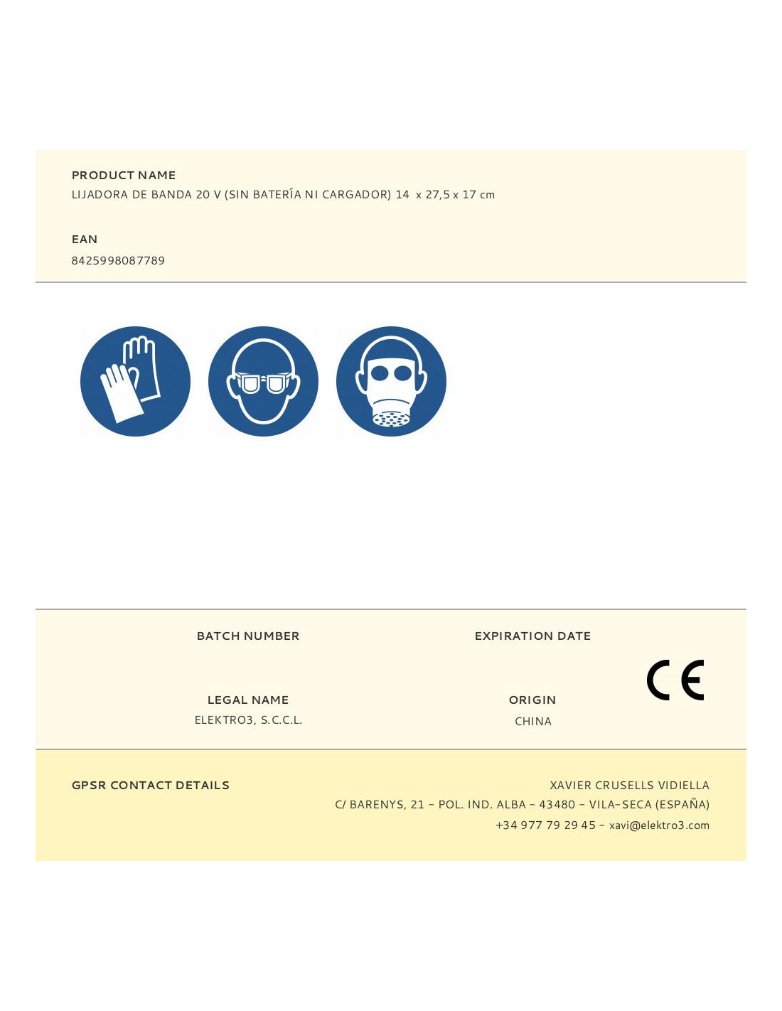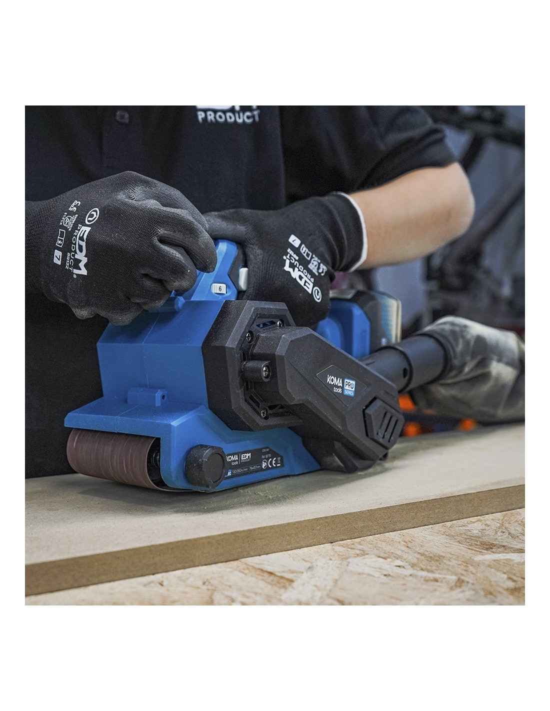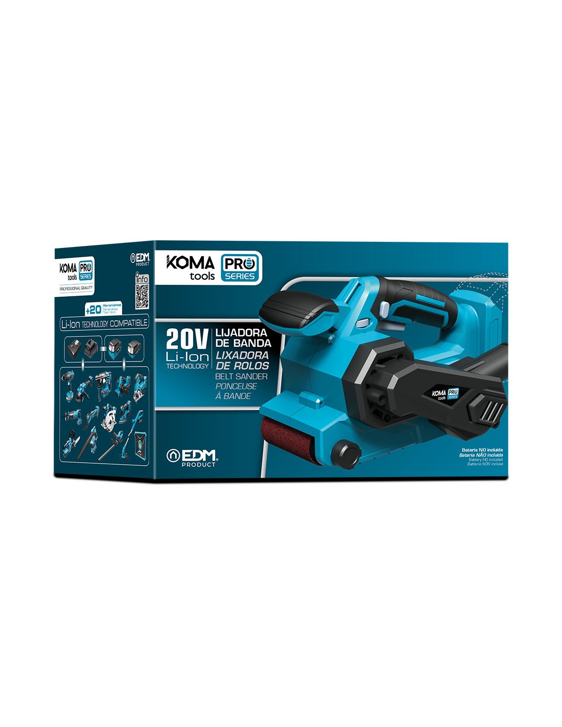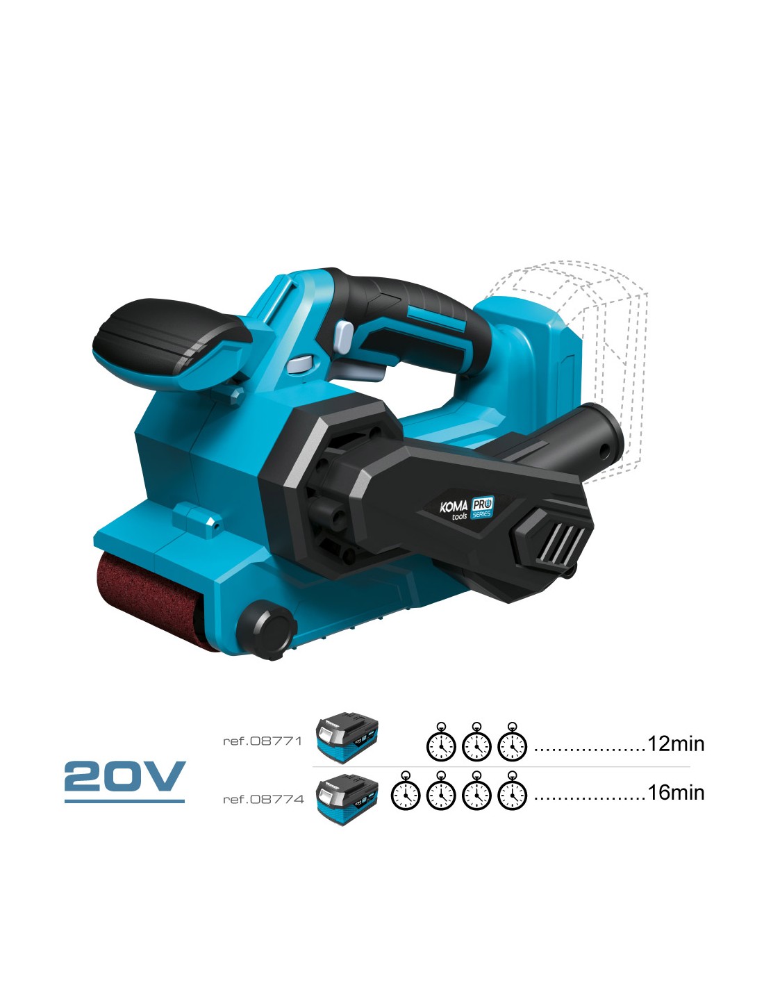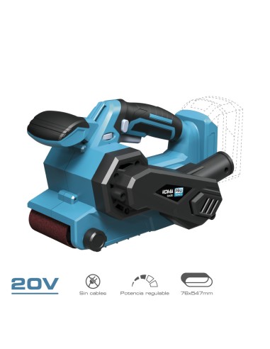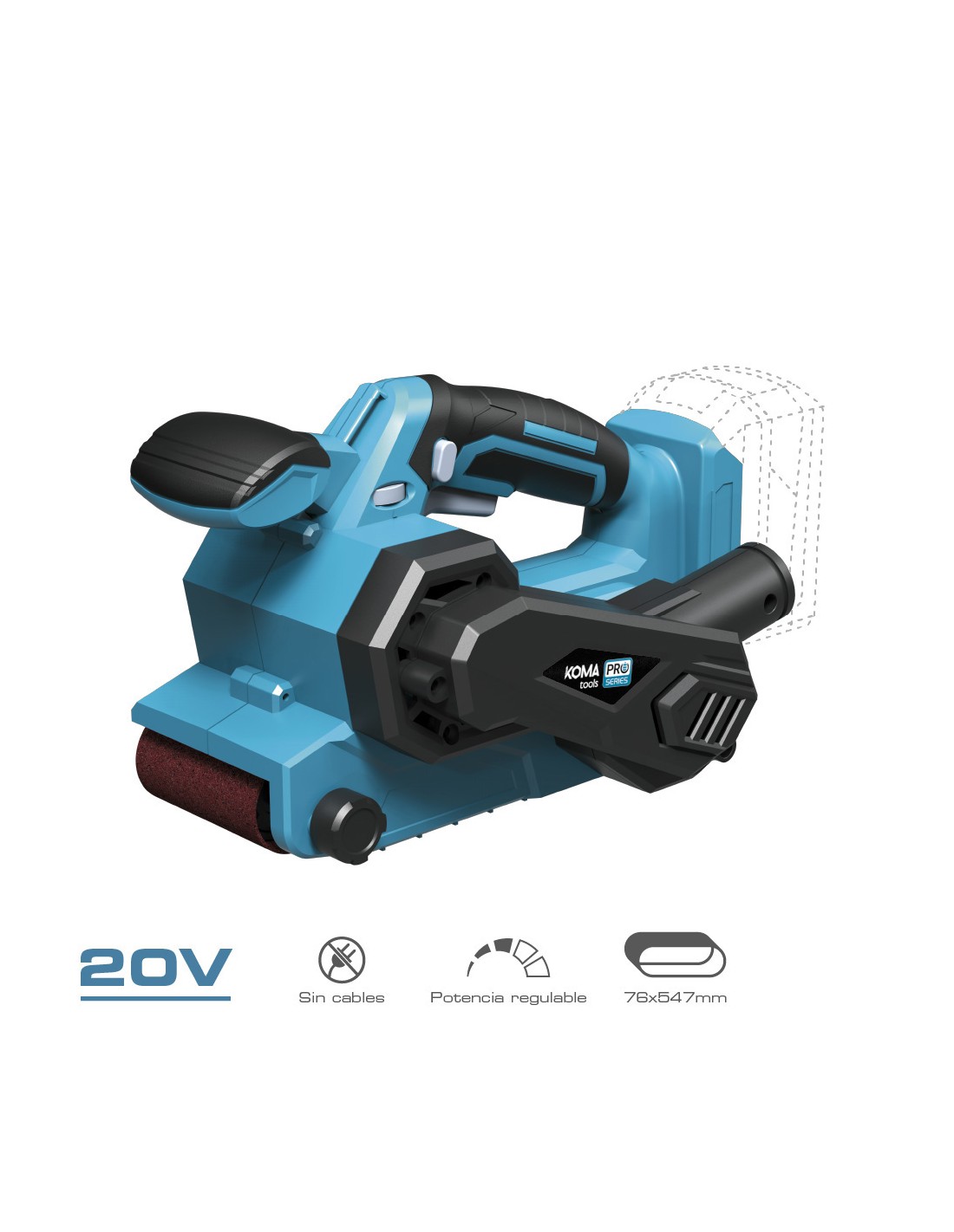 Lijadora de banda. potencia: 20 v li-ion (sin batería ni cargador) pomo de agarre delantero. velocidad 120-350m/min. salida para aspirador. regulador de centrado. 20v-lb lija de 76 x 457mm. 14 x 27,5 x 17 cm