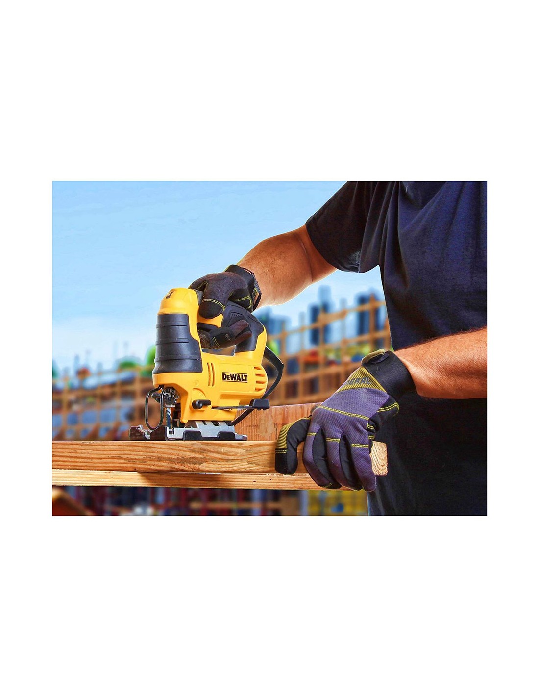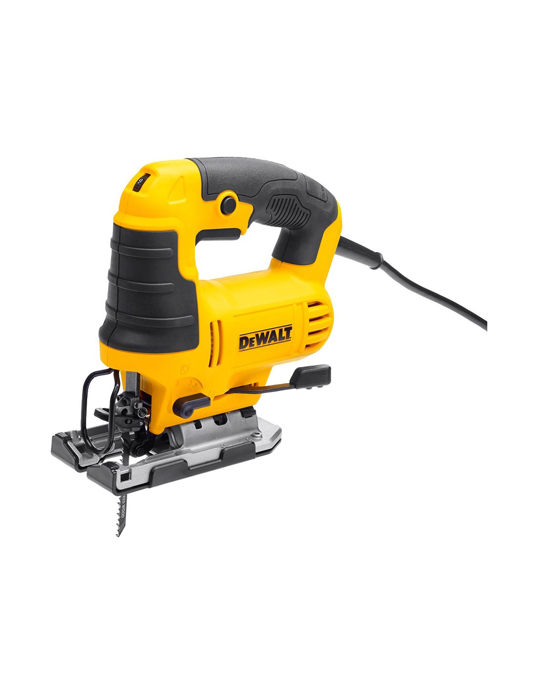 Caladora 650w dwe349-qs dewalt. empuñadura cerrada, rueda para el control de 6 velocidades 500-3200rpm, máx. capacidad de corte madera/metales no ferrosos/acero 85/20/10mm, acción pendular de 3 posiciones, porta-herramientas ajuste de hoja sin llave, cubierta antiarañazos de la base, adaptador aspirador, maletín, 2kg. equipo estándar: 1 hoja. cambio de la hoja sin herramientas. 220-240v