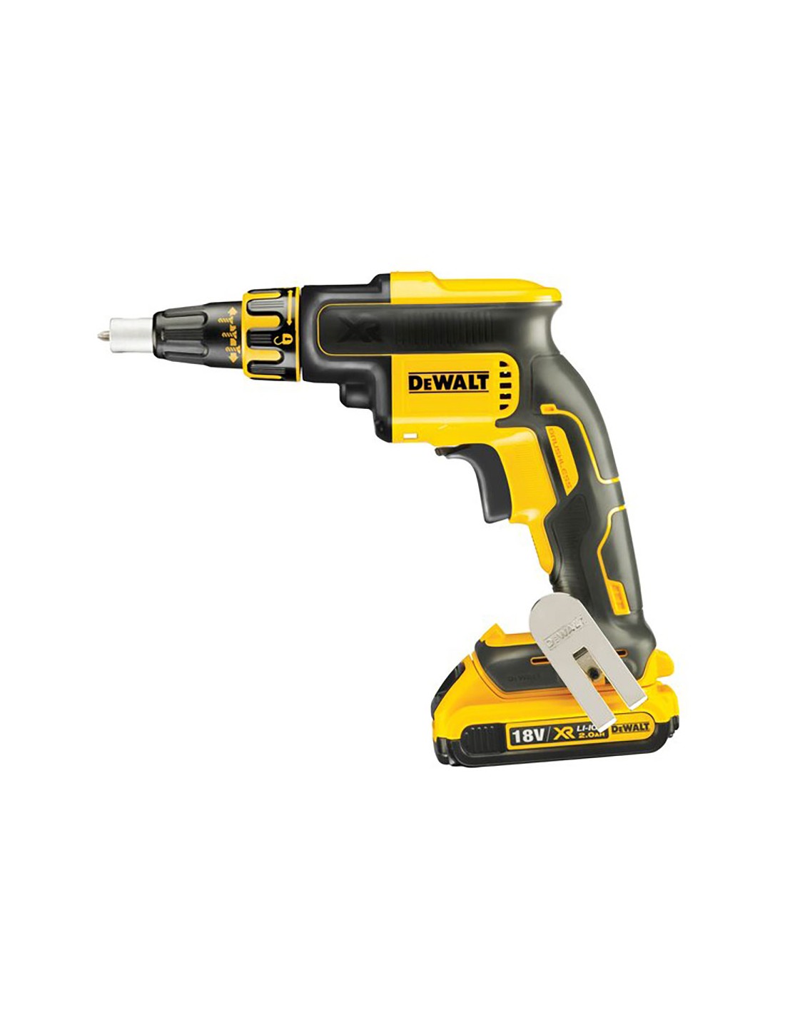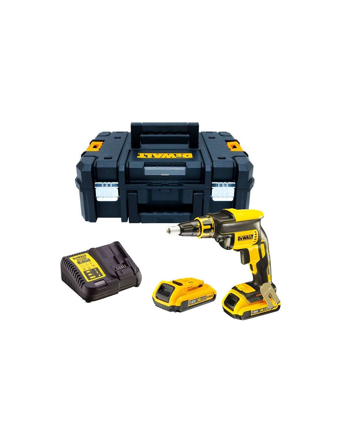 Atornillador sin escobillas para panel de yeso xr 1/4" 18v li-ion 2,0ah dewalt. portapuntas 6,35mm, velocidad de carga 0-4400 rpm 30nm de par, potencia de salida 435w 1,88kg. incluye 2 baterias li-ion xr 2,0ah, cargador multi-voltaje xr, tope de profundidad (nariz), dt7520 portapuntas magnético con una punta de 25mm pr2, maletin tstak ii.