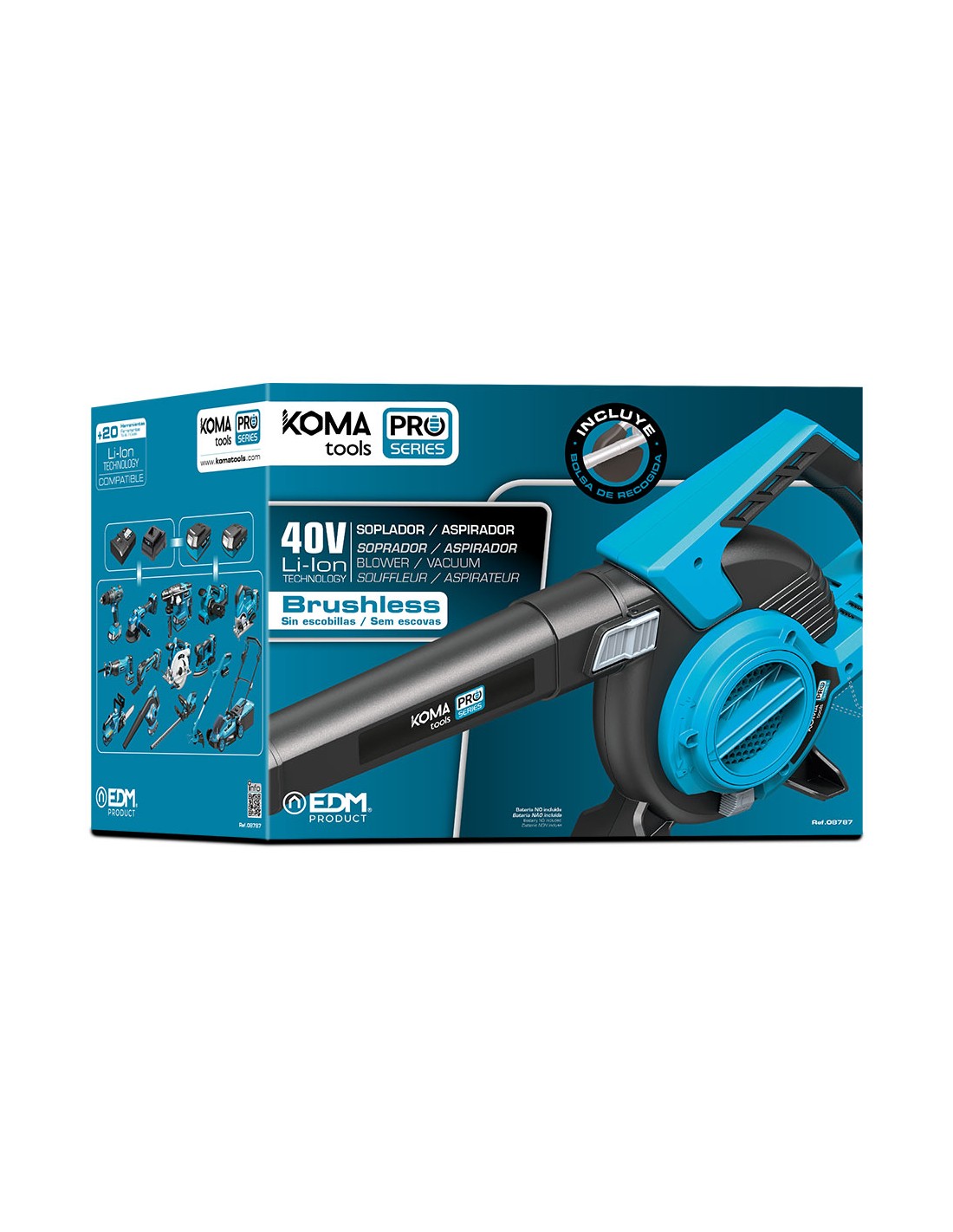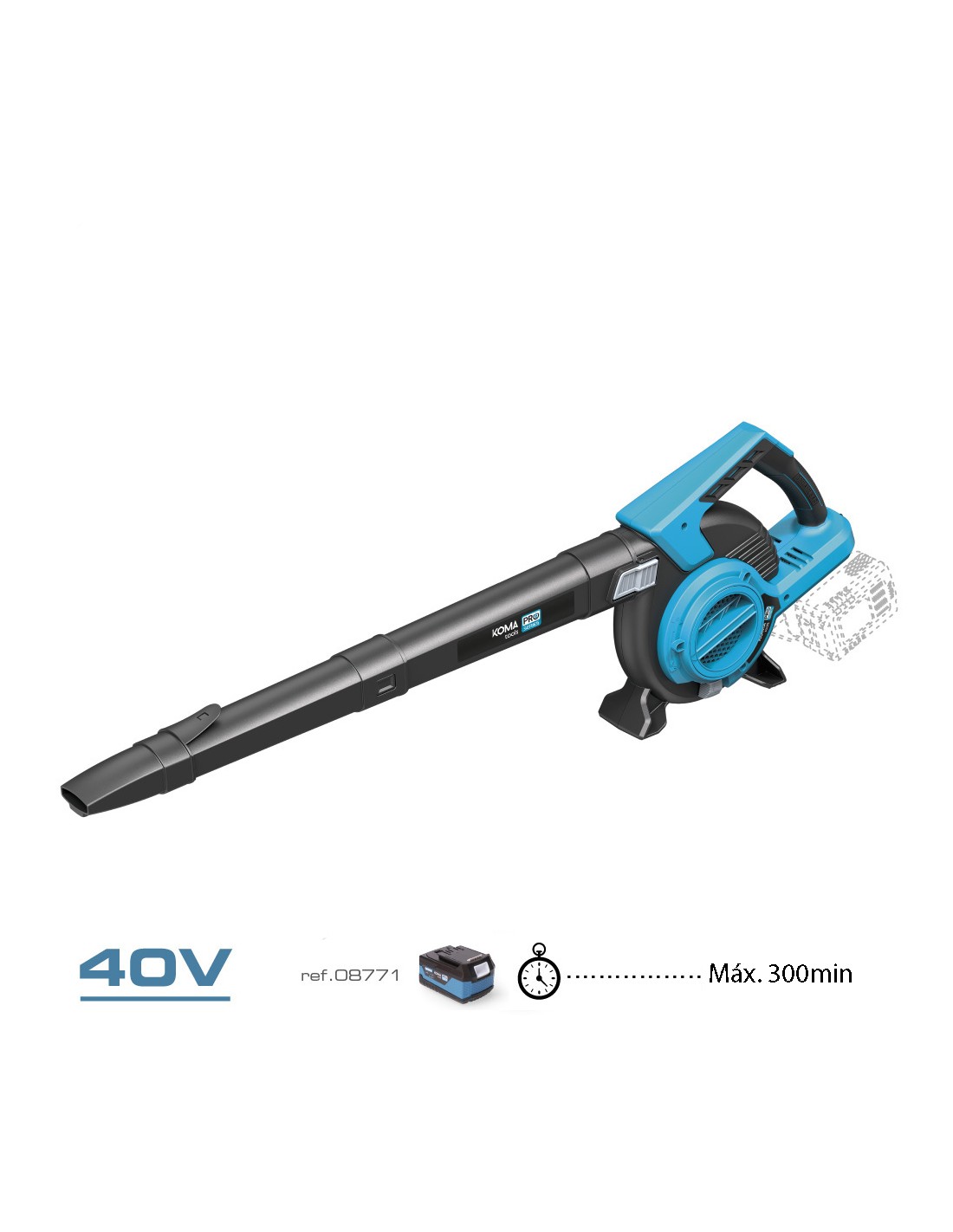 Soplador/aspirador/triturador 40v (sin baterias y cargador) funciona con dos baterias de 20 v . brushless (sin escobillas). incluye bolsa de recogida, botón de bloqueo para cambio de tubo, tubo de soplado, tapa protectora conexión tubo aspirador. 20v-sa. dimensiones 108 x 33 cm