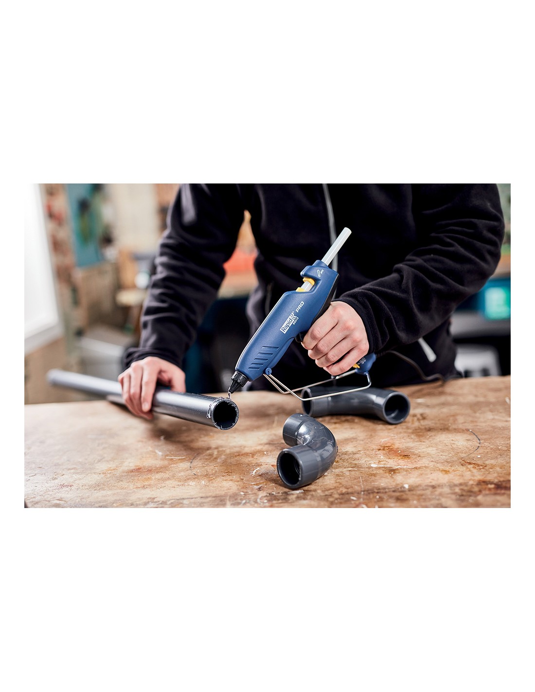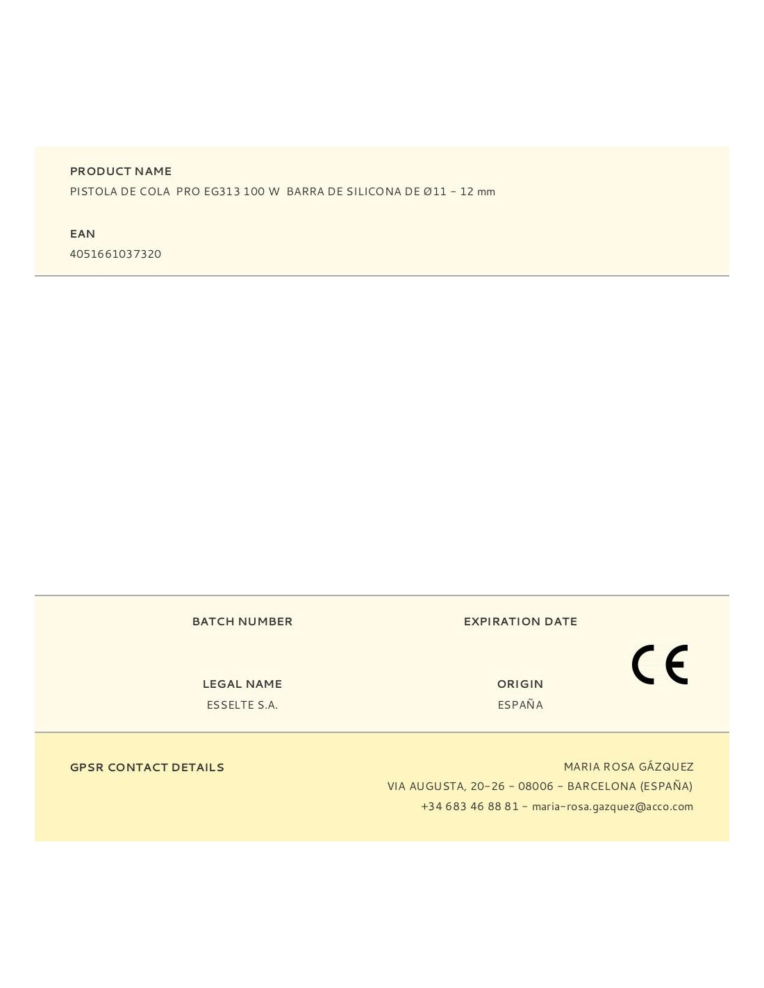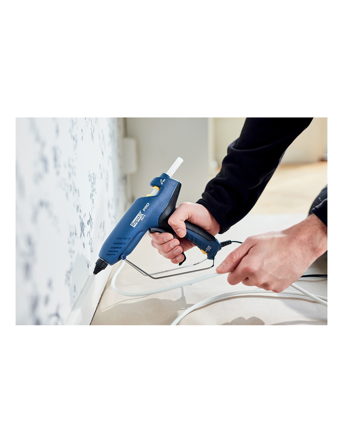 Pistola de cola pro eg313 100w 5001490 rapid. pistola de cola profesional, compacta y práctica con un alto rendimiento y un tiempo de calentamiento de sólo 3 minutos. cómoda de manejar, bien equilibrada y diseñada para trabajar con precisión incluso cuando se trabaja intensamente, la eg313 se suministra con un soporte fijo estable y una boquilla reemplazable. ofrece una producción de cola de 900g/h y cuenta con un control de temperatura autorregulado de 195°c. 23,5x6,5x28,5cm