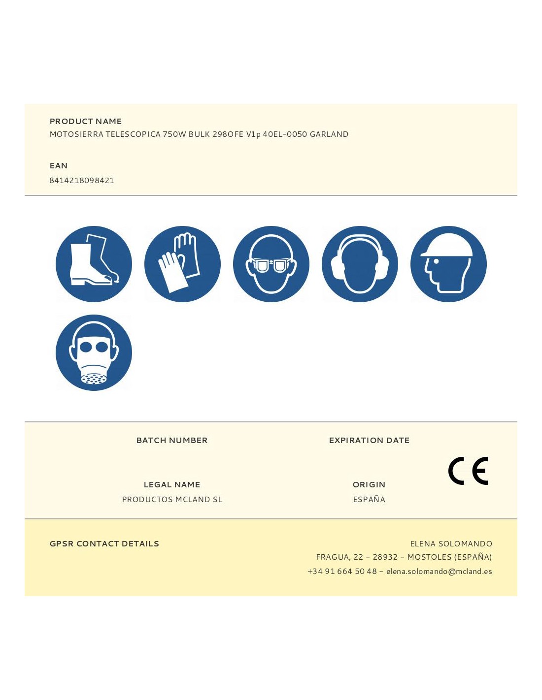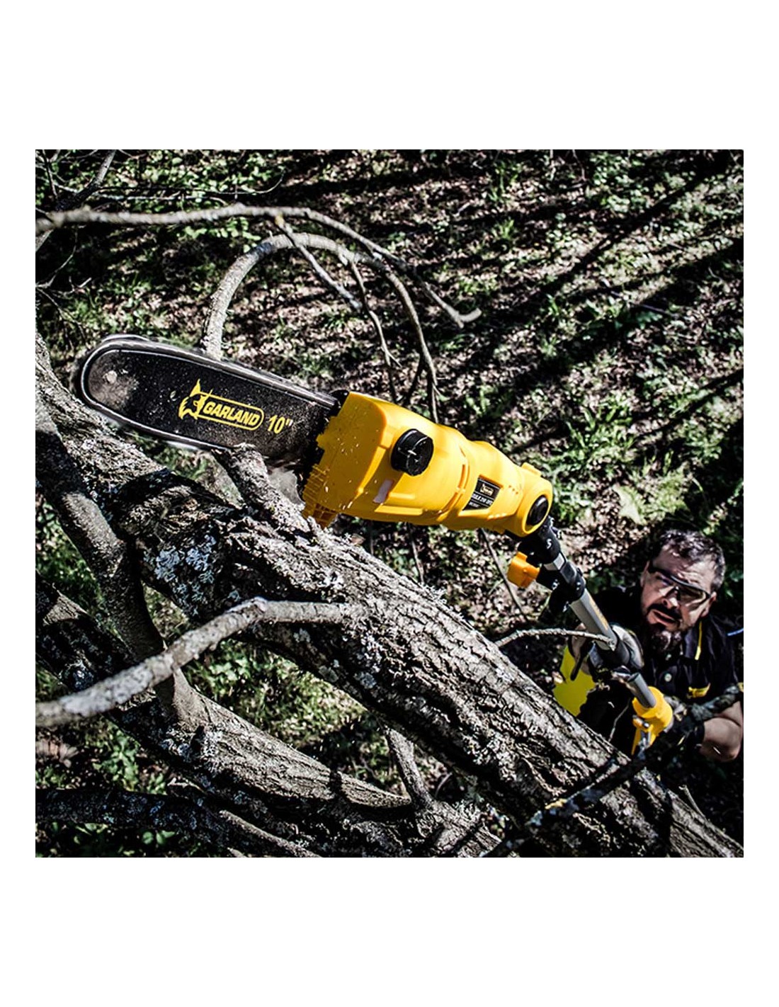 Motosierra electrica enchufable de pertiga garland bulk 298ofe-v19 - potencia 750w, espada 10"/ 25cm, altura de trabajo 2,85m. con espada de 10", cadena de 3/8" y cabezal de angulo regulable de 0° a 40°, lo que facilita la llegada a las ramas mas inaccesibles. caracteristicas tecnicas: bulk 298ofe-v19. motor electrico. potencia 0,75kw. voltaje 230v frec. 50hz. proteccion ip20. ajuste de cadena sin herramientas. 40 eslabones de cadena. largo de espada 10/25cm. paso de cadena 3/8 bp - 0’050. peso 3,8kg