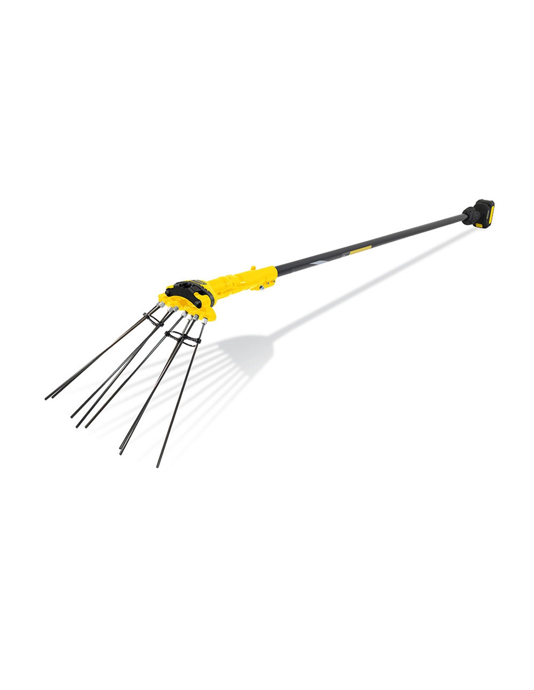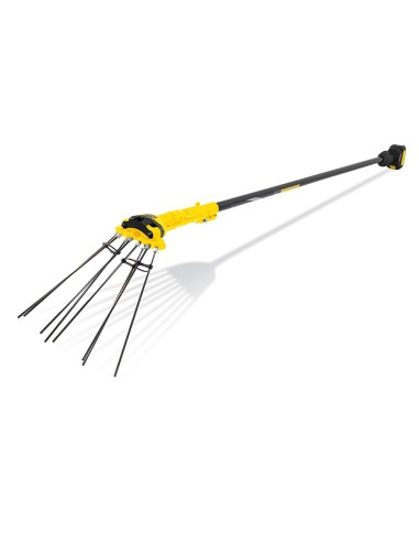 Vareador a bateria de 20v (no incluida) 1400 golpes por minuto y capacidad de recogida 80. 120kg/h. con fusible de seguridad para evitar sobrecargas. con 8 varillas de carbono reemplazables. transmision telescopica hasta los 4'5-5m de altura. dimensiones 185x18x8cm. peso 2,1kg.