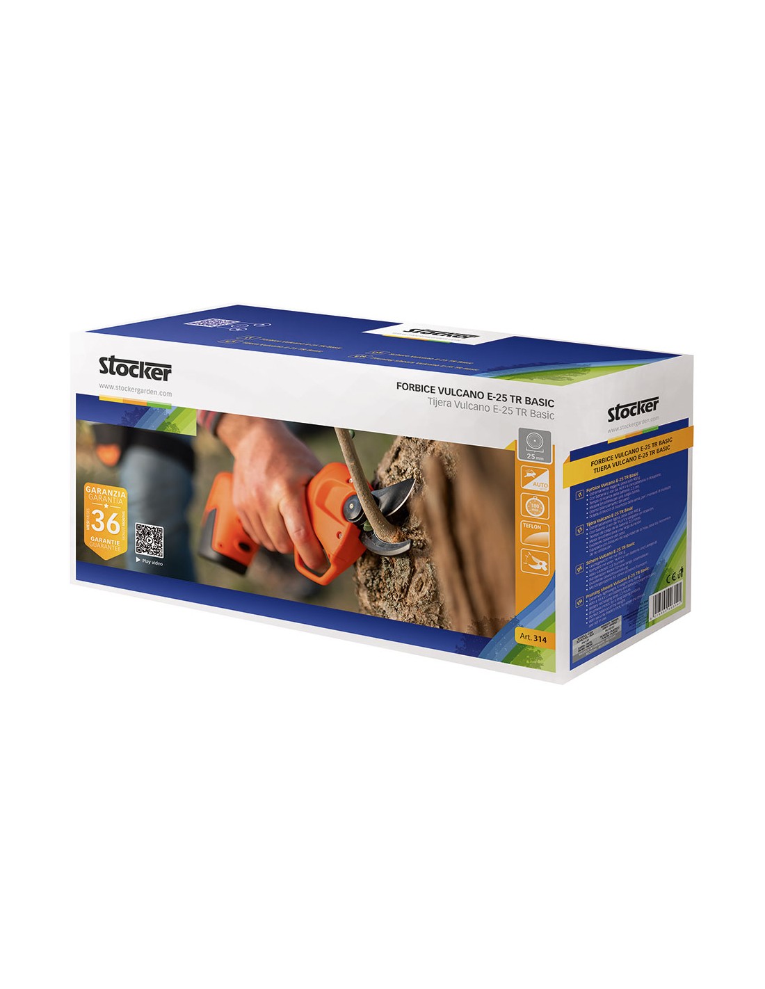 La tijera vulcano e-25 tr basic el gatillo hiperreactivo activa la hoja con cada pulsación. la apertura de la hoja se puede regular en dos niveles: 25 o 20mm, para ser más rápidos en las ramas delgadas. características técnicas: peso: 900g longitud: 29cm motor: 150 w sin escobillas corriente nominal: 10,0 a