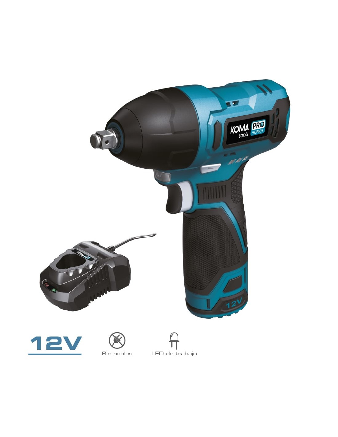 Llave de impacto 12 v, madril 3/8", giro libre 2700 rpm ratio de impacto 3800 bpm, torque máx. 120n m. interruptor de encendido/apagado, interruptor de dirección de rotación y bloqueo de inicio, indicador de bateria, luz led. incluye bateria 2.0 ah 12 v con carga auxiliar usb c y cargador 50 w 2,4 v, con maletín para guardar y transportar. 12v-im-k. medida 16,1 x 16,5 cm