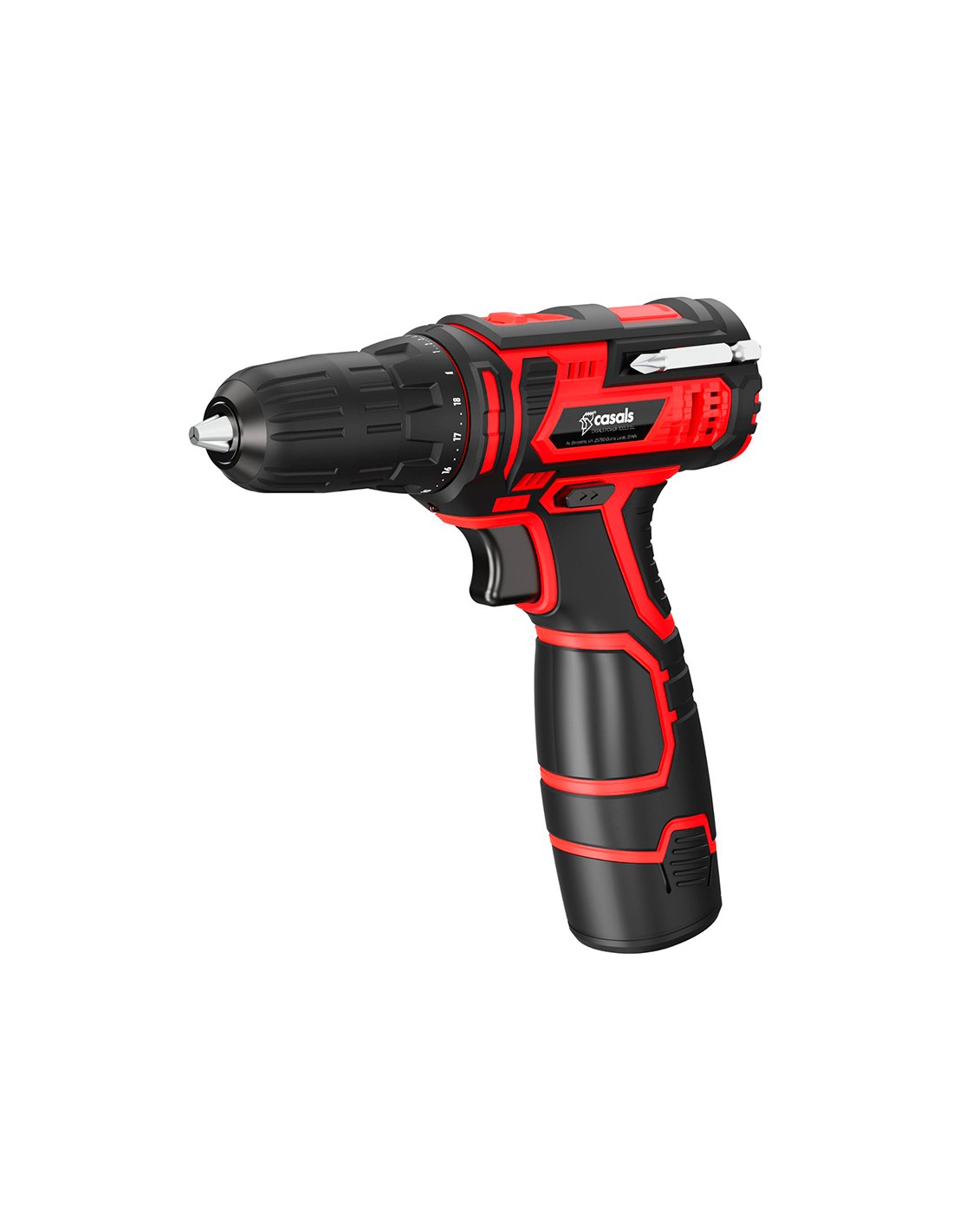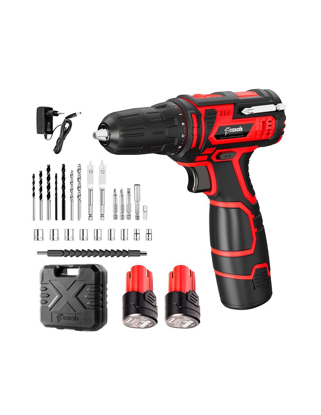 Taladro atornillador a batería 12 v. batería 1500 mah de litio extraíble. carga en 3 h. velocidad 1: 0-400 rpm. velocidad 2: 0-1400 rpm, máx. fuerza 35 nm, posiciones par 18+1. portabrocas ø10 mm. regulador de velocidad electrónico. bloqueo de funcionamiento. led de trabajo. indicador del estado de carga de la batería. función reverse. incluye: 2 baterías, cargador, 9 brocas de distintos tamaños, 9 llaves, 1 eje de perforación flexible, 4 puntas de atornillado y adaptador hexagonal