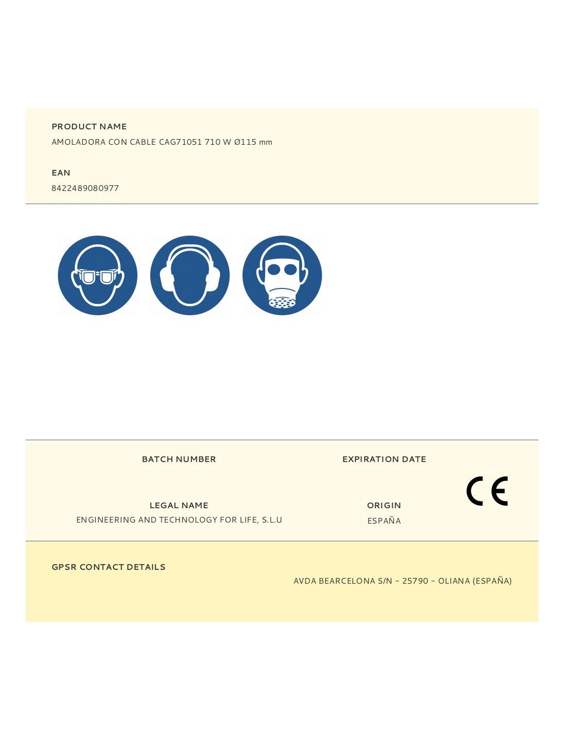 Amoladora con cable 710 w 230 - 240 v 50hz. velocidad: 12.000 rpm, disco de corte: ø115 mm, rosca eje: m14, mango ergonómico. incluye llave, mango de sujeción y escobillas
