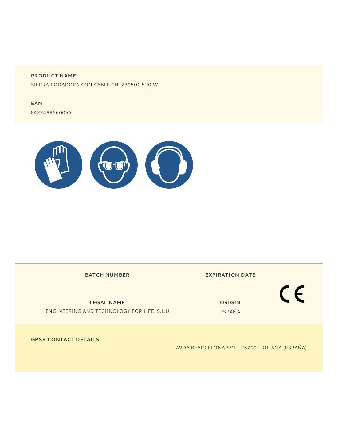 Sierra podadora con cable cht23050c 520 w 230 - 240 v 50 hz, capacidad de corte: 16 mm, longitud de corte: 360 mm, velocidad de 1.800 rpm