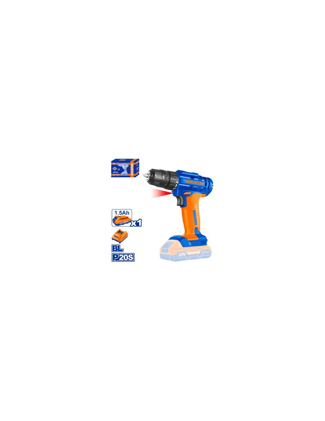 TALADRO INALAMBRICO 20V +BATERIA 1.5Ah + CARGADOR WADFOW