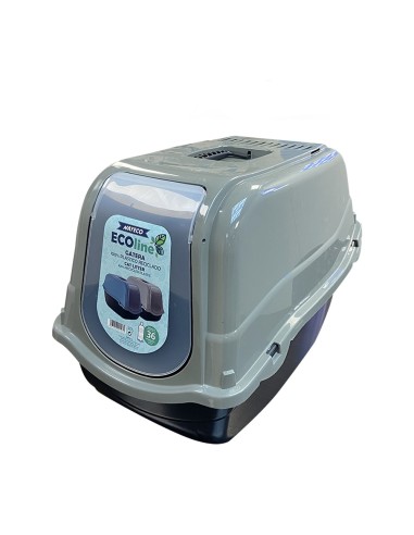 Gatera eco line 57x39x41cm colores surtidos gatera fabricada con plástico 100% reciclado para fabricar esta gatera se han utilizado un equivalente de 36 envases de 1l. está tapada con puerta basculante y zona donde poner filtro de carbón universal (no incluido). ideal para dar a nuestros felinos la intimdad que requieren y así no estresarlos provocando que busquen otro espacio para hacer sus necesidades. evita que salga la arena en el extrior durante su uso. con una asa para facilitar su transporte. de fabricación europea. nayeco
