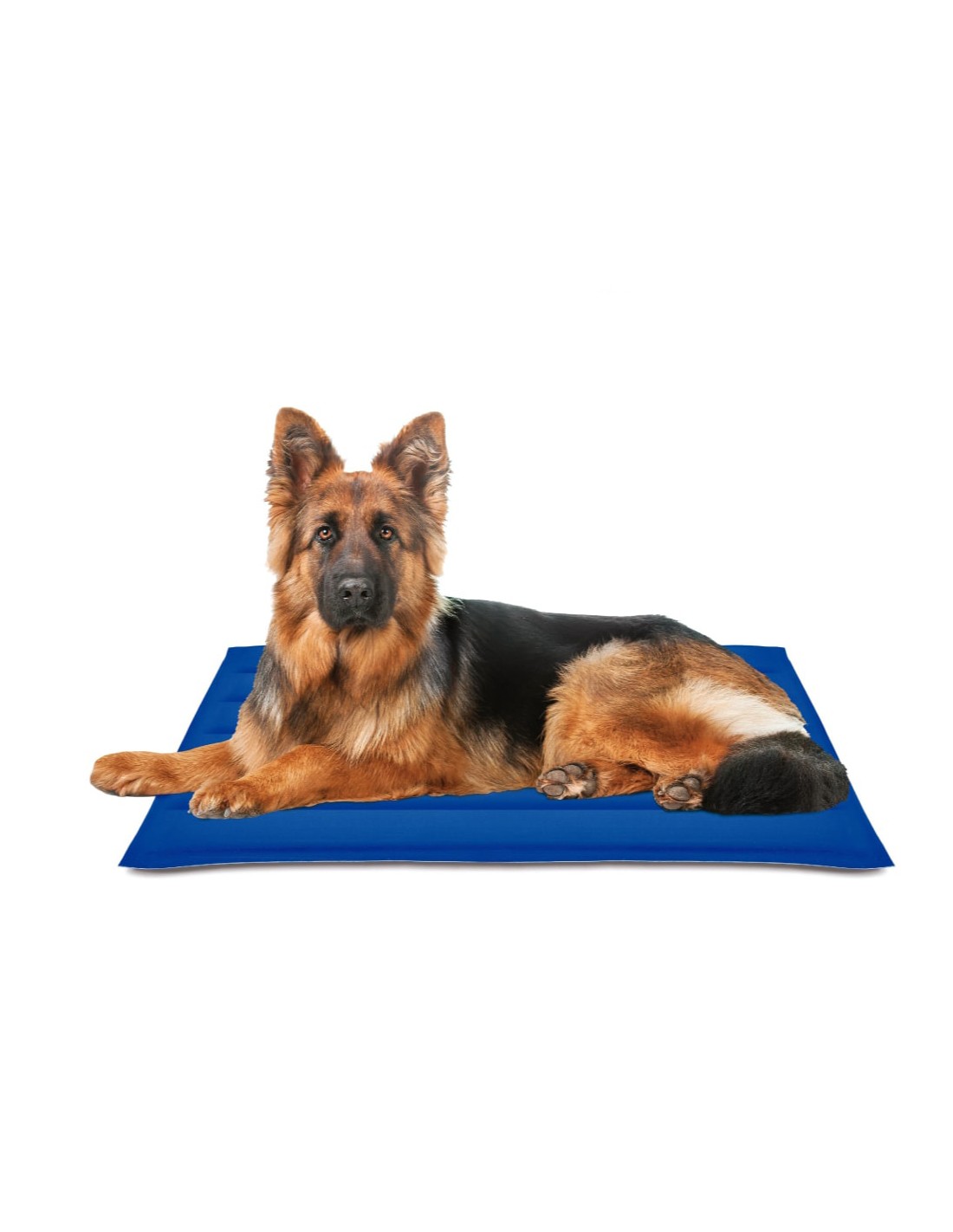 Alfombrilla refrescante cool mat gel azul 90x105cm ayuda a regular la temperatura corporal de nuestra mascota. sin refrigeración previa. se activa con la presión de nusetra mascota. no necesita electricidad. no necesita agua. plegable y fácil de limpiar. refresca durante varias horas. la alfombrilla se mantiene entre 5-10c por debajo de la temperatura ambiente. nayeco