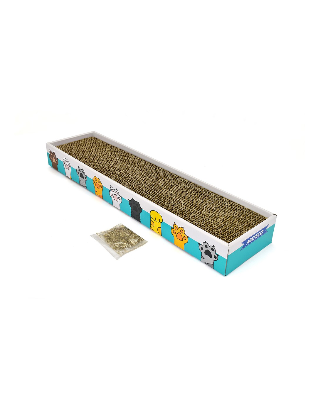 Rascador para gatos con catnip taby cat 48x13x5cm ideal para gatos de cualquier tamaño y edad e ideal en casas con poco espacio. hecho con cartón coarrugado de alta densidad. en los gatos la acción de arañar es un instinto básico. por ello debemos convivir con este comportamiento natural y darle una opción para proteger nuestos sofás, muebles, etc. nayeco