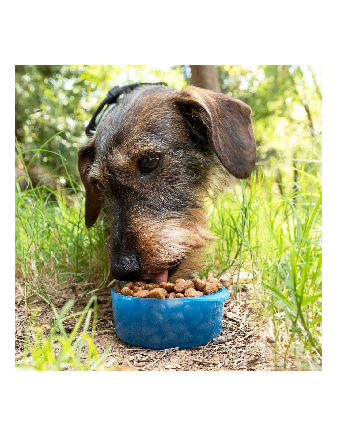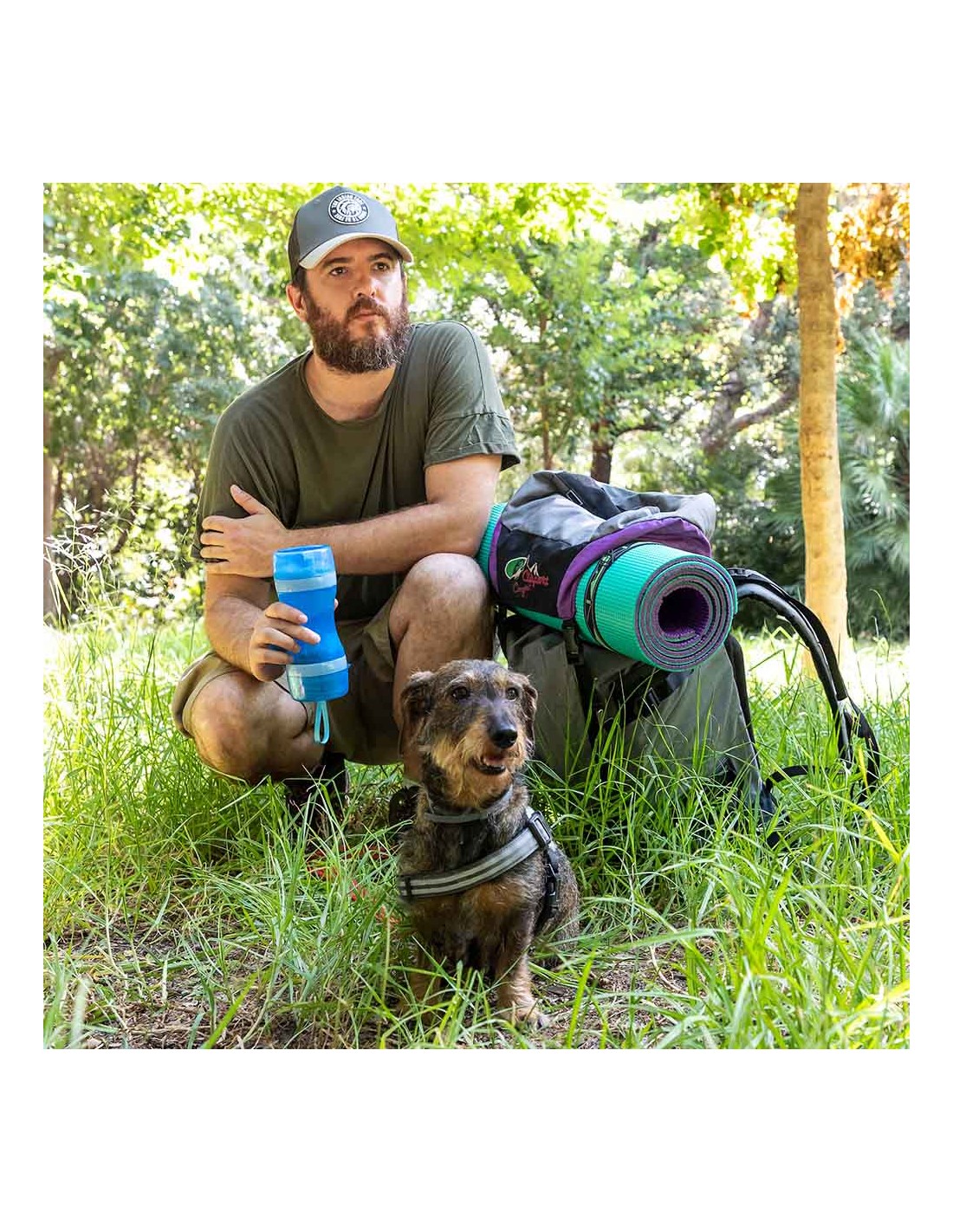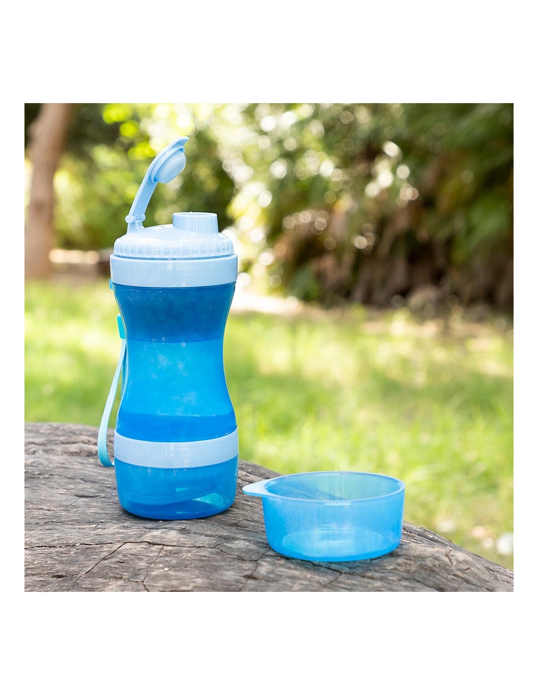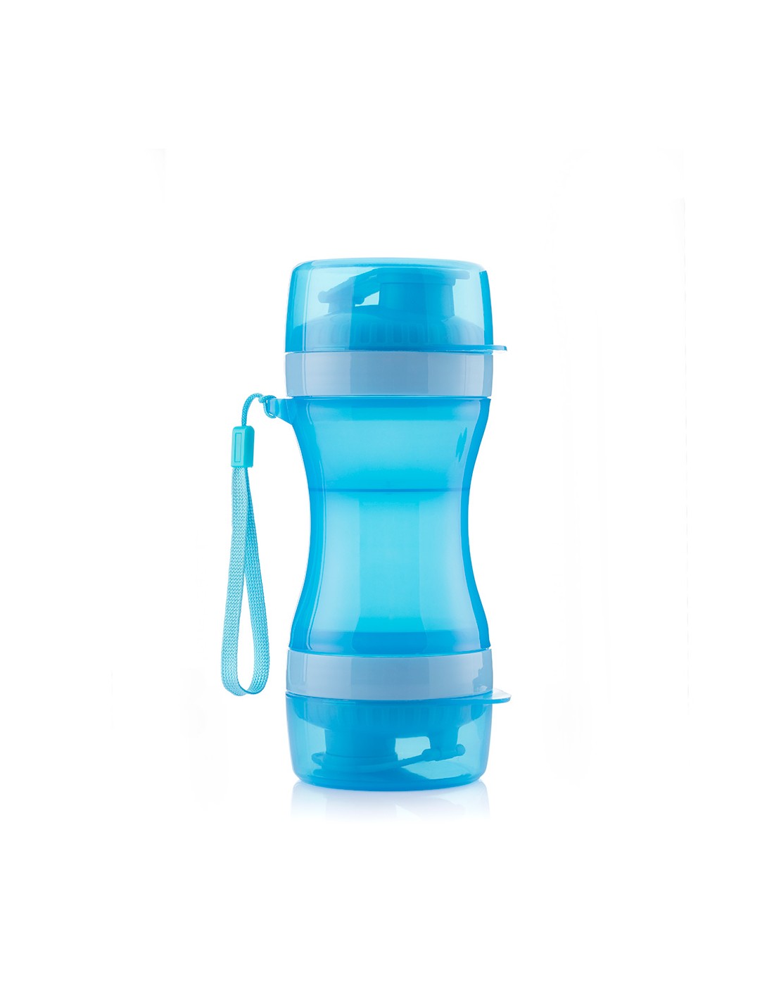 Botella con depósito de agua y comida para mascotas 2 en 1 pettap v0103141 innovagoods un original y práctico recipiente para agua y comida con forma de botella muy útil para dar de beber y alimentar a las mascotas fácilmente en cualquier momento y lugar. su interior está dividido en dos partes separadas, una para depositar el agua y otra para la comida. además, las dos tapas se utilizan como cuencos para servir el agua y la comida al animal. se desmonta y se limpia con facilidad y su sellado con silicona evita escapes y derrames. gracias a su innovador diseño portátil con cordón para colgar, se puede llevar cómodamente colgado en la mochila, en el bolso o en la muñeca durante los paseos, excursiones, viajes, etc.