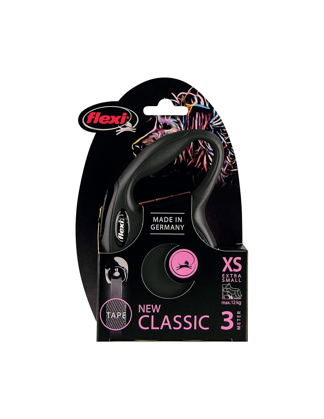 Correa extensible flexi classic negra, cinta 3 m, xs, hasta 12 kg