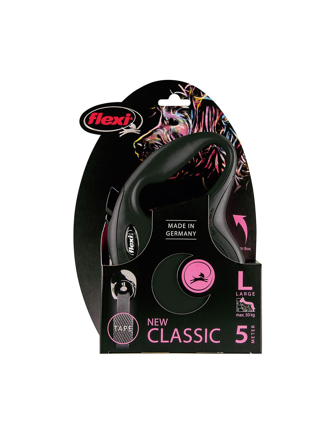 Correa extensible flexi classic negra, cinta 5 m, l, hasta 50 kg