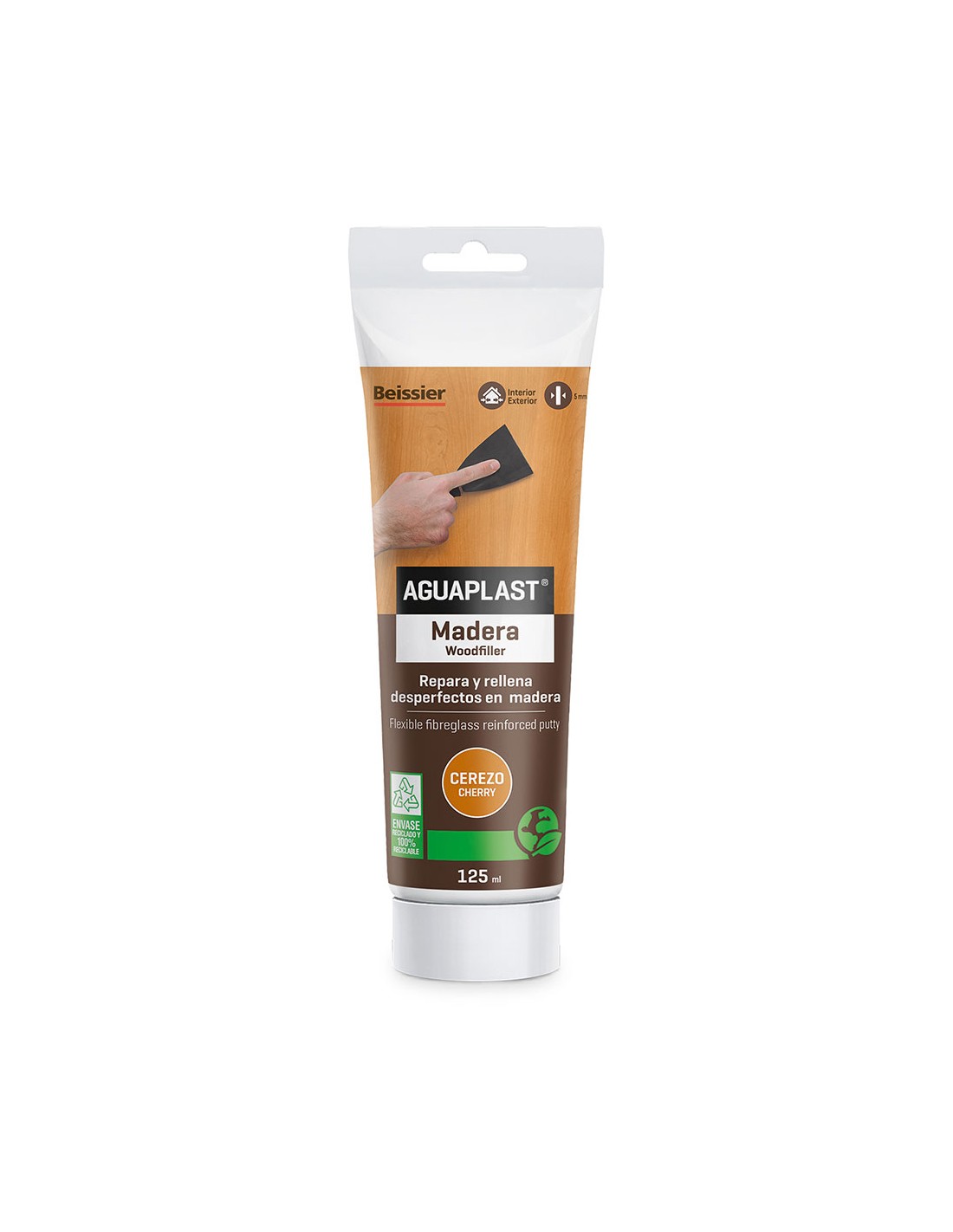 Masilla lista al uso para reparar, rellenar y nivelar pequeñas grietas, agujeros y desperfectos sobre todo tipo de maderas. reforzado con fibra de vidrio. moldeable. recortable. sin disolventes. muy flexible, se adapta a las deformaciones de la madera hasta un 20%. ligero, no descuelga. para interior y exterior. color cerezo. 125 ml