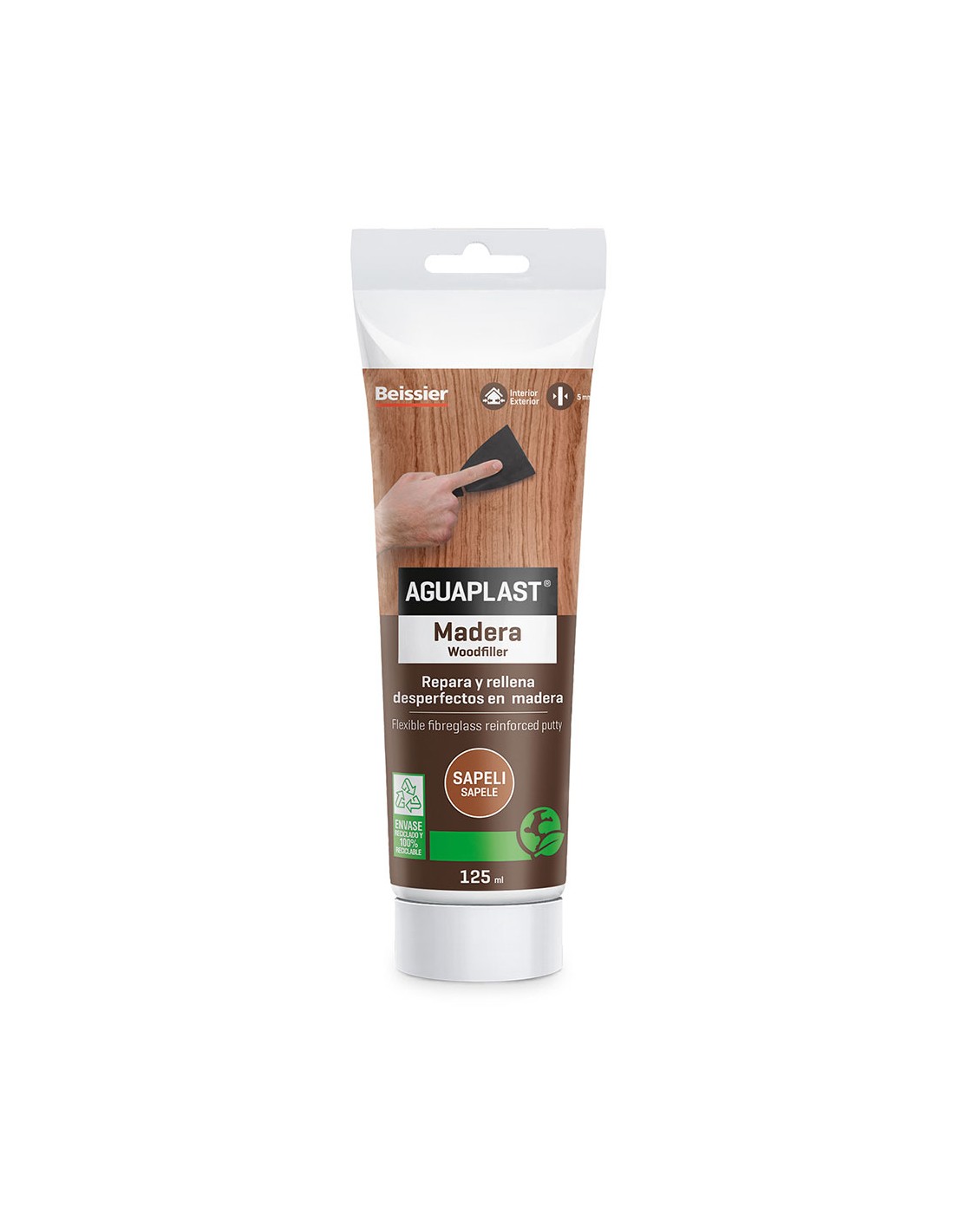 Masilla lista al uso para reparar, rellenar y nivelar pequeñas grietas, agujeros y desperfectos sobre todo tipo de maderas. reforzado con fibra de vidrio. moldeable. recortable. sin disolventes. muy flexible, se adapta a las deformaciones de la madera hasta un 20%. ligero, no descuelga. para interior y exterior. color sapeli. 125 ml