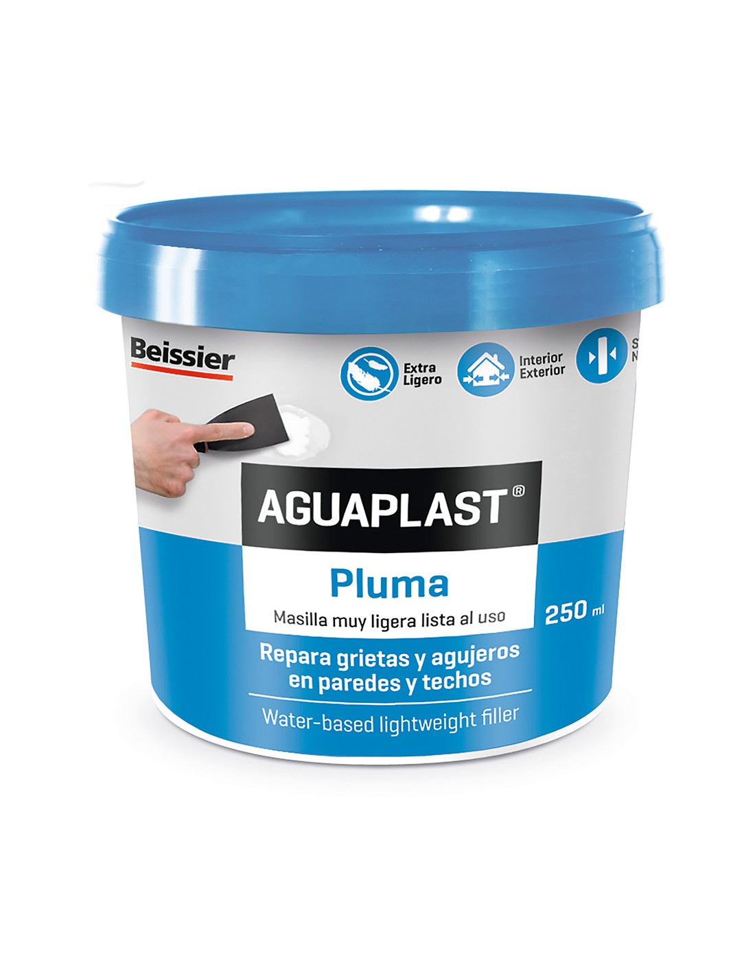 Masilla pluma 250 ml lista al uso para preparar y reparar con rapidez grietas, agujeros, imperfecciones... para reparar molduras y piezas de poliestireno expandido. para alisar con rapidez en capa fina, como acabado antes de pintar. máxima capacidad de relleno. no merma ni fisura. una sola aplicación basta. flexible. no descuelga, no mancha. pintado inmediato, excepto pinturas al disolvente (24-48h). color muy blanco. para exterior y interior