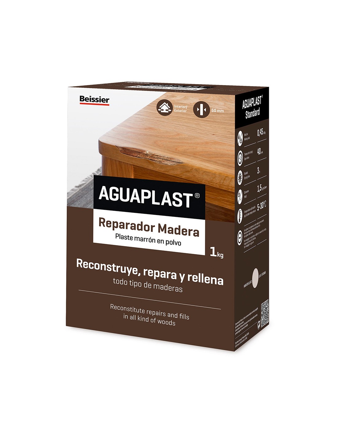 Aguaplast reparador madera 1kg plaste en polvo para reparación de madera en grandes espesores. repara y rellena desperfectos de hasta 50mm en madera. fácil reperfilado y lijado una vez seco. secado rápido. lijable y repintable en 3 horas. excelente adhesión. acabado fino y duro, perfecto para su posterior pintado o esmaltado. para interior y exterior. color marron claro