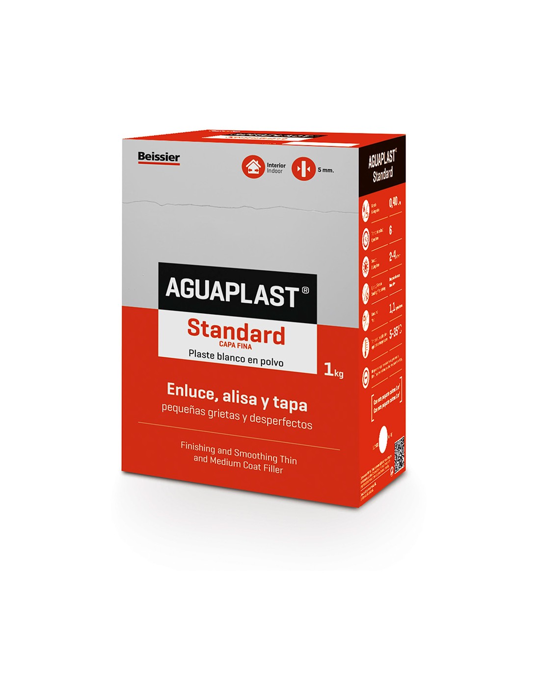 Plaste en polvo standard 1 kg para enlucir, alisar y tapar grietas. para tendido de paredes nuevas, alisado y nivelado de paredes tras arrancar papel pintado, relleno de pequeños desperfectos: desconchados, agujeros, fisuras, grietas... proporciona un acabado fino, duro y de gran calidad, apto para cualquier tipo de pintura plástica, papeles pintados... reduce la absorción del soporte, ahorrando pintura. buena adherencia. secado rápido. para interior. color blanco