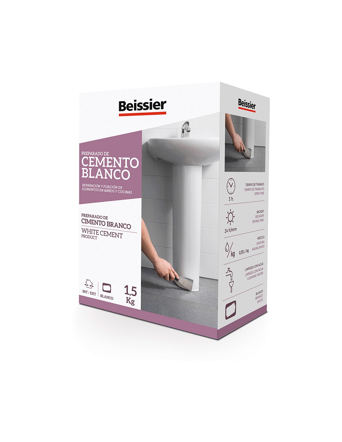 Cemento blanco 1,5 kg conglomerante hidraulico para reparaciones en baños y cocinas. sobre hormigón, piedra o ladrillo. fijación de azulejos, sanitarios y fontaneria. cuando se mezcla con arena y agua es apropiado para trabajos de albañileria sin necesidad de adicionar otros materiales. colocación de plaquetas, azulejos y terrazos. solados y base para pavimentos