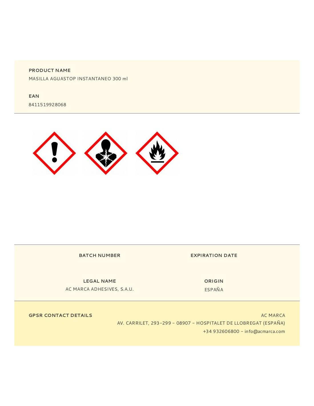 Masilla aguastop instantaneo cartucho 300 ml. productos para reparaciones de emergencia y definitivas soluciones de efectividad total aplicación sobre una gran variedad de materiales