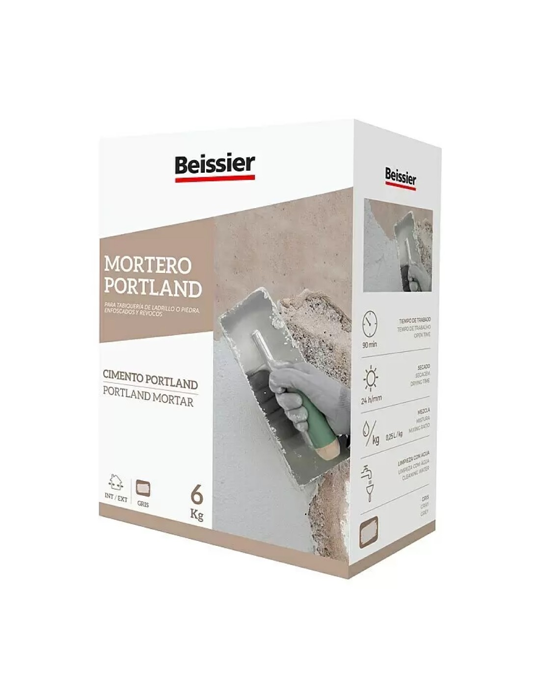 Mortero portland 6 kg. para tabiquería de ladrillo o piedra, realización de revocos, enfoscados y pavimentos. levantar muros y paredes de piedra o mampostería. realizar fijaciones donde se requiera resistencia. de uso interior y exterior. color gris.