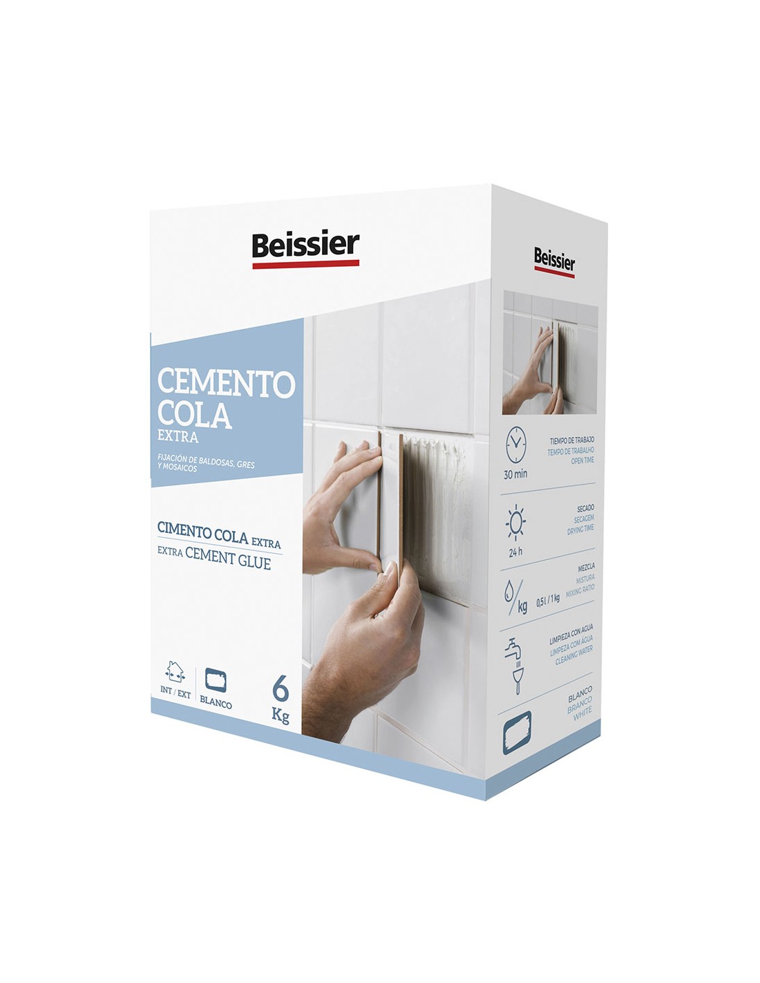 Cemento cola 6 kg mortero cola porcelanico para la colocacion y pegado de materiales cerámicos en paredes y suelos. azulejos, mosaico, baldosas, gres, gresificado, toba rustica, gres rustico, klinker y revestimiento de piedra natural insensible al cambio de color. clasificacion c2 segun en-12004. resistente al agua y a la inmersión. color blanco