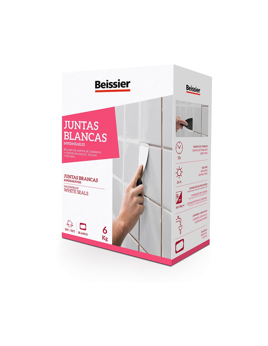 Masilla para juntas blancas impermeables 6 kg mortero especial para rellenar e impermeabilizar juntas de anchura máxima de 10mm en suelos y paredes. util para realizar juntas en tabiques y madera (ventanas, puertas, etc.) resistente al agua y a los detergentes. impermeable e hidrofugo. flexible. limpieza muy fácil. indicado para trabajar en sitios humedos como baños, cocinas o piscinas, en contacto ocasional o permamente con agua. clase cg2w segun en-13888. color blanco. interior y exterior.