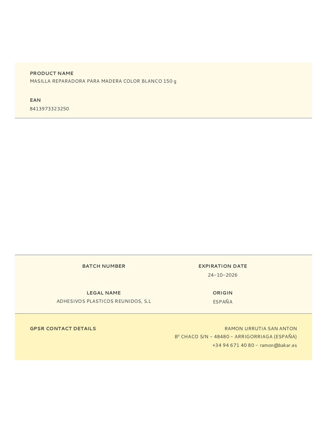 Masilla reparadora para madera ziur aqua color blanco 150 g