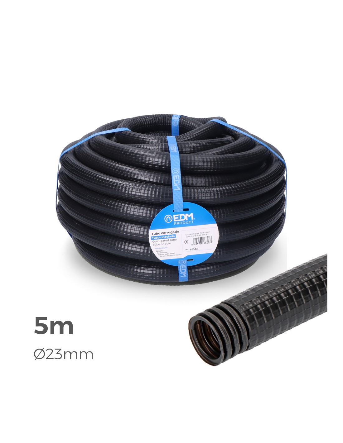 Corrugado para exterio, medida interior ø23mm, medida exterior ø32mm, longitud 5m ce
