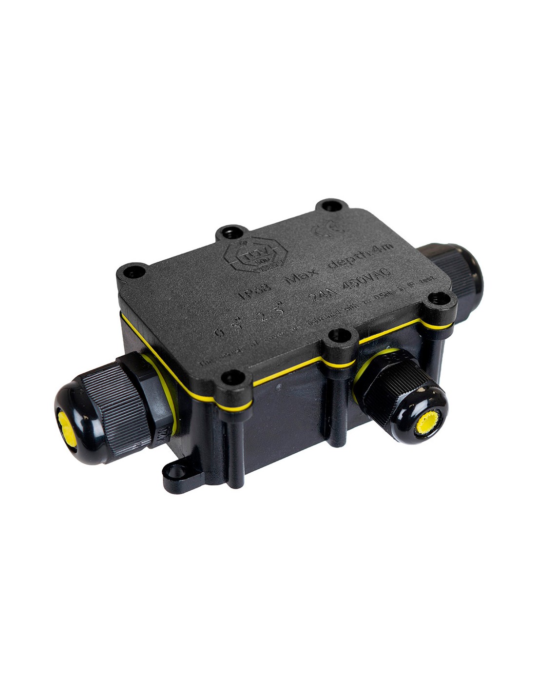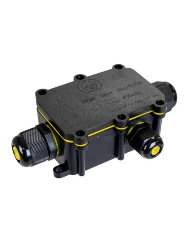 Caja de empalmes aerea para exterior estanca con 3 prensaestopas ip68 para exterior 24a 450vac t60. terminal 3p gwt 650°c seccion 4mm diametro del cable 5-9mm/9-12mm 8x5,2x3,7cm black series solera (retractilado) bk-3p