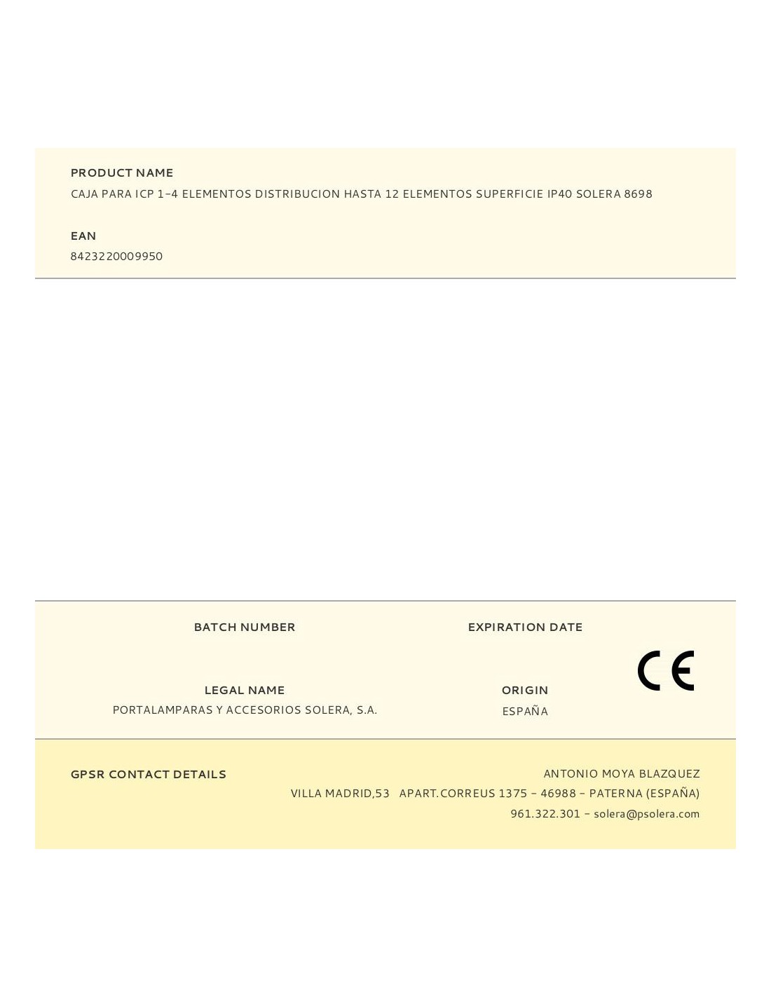 Caja para icp 1-4 elementos distribucion hasta 12 elementos superficie ip40. dimensiones exteriores: 40,7x24,7x10,4cm solera 8698