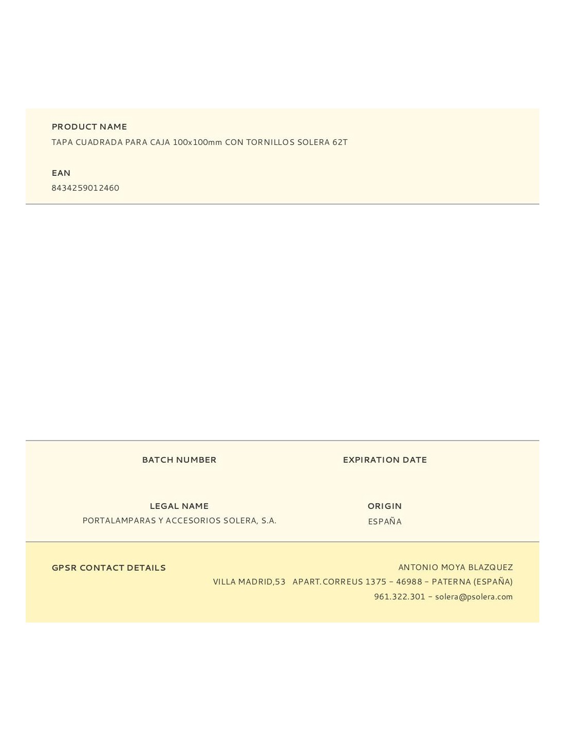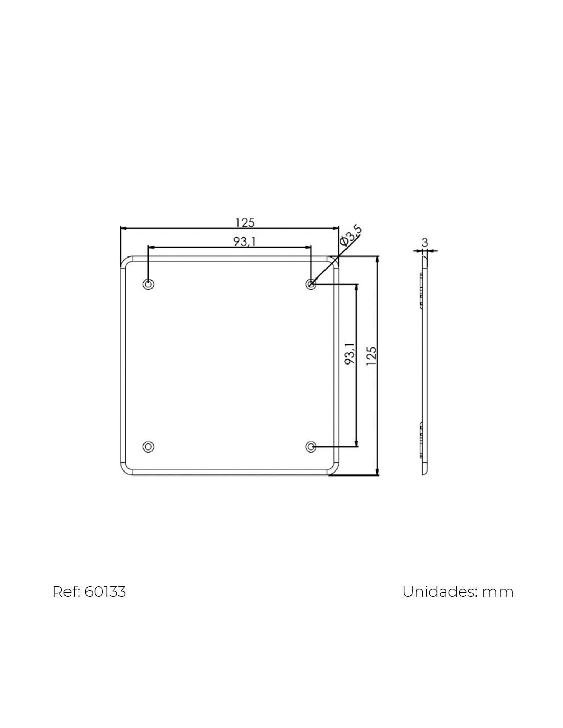 Tapa cuadrada para caja 100x100mm con ref: 60136 tornillos solera 62t