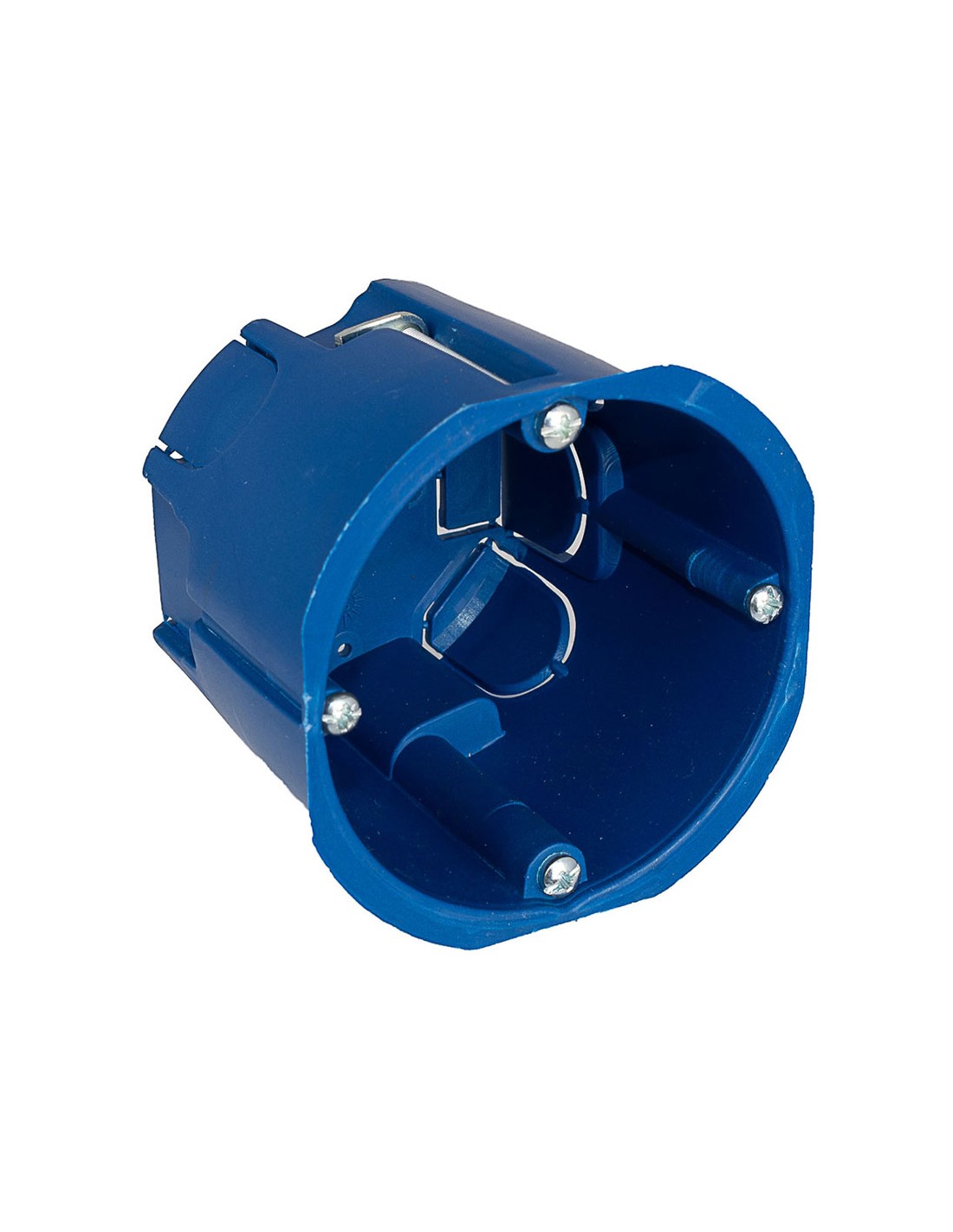 Caja universal para mecanismos en tabique hueco. azul. solera 5625a. para 1 elemento. fijación con garras metálicas. dimensiones para empotrar ø68x60mm 2. entradas para tubo ø20mm y 4 entradas de ø25mm utilizar corona de ø68mm. color azul