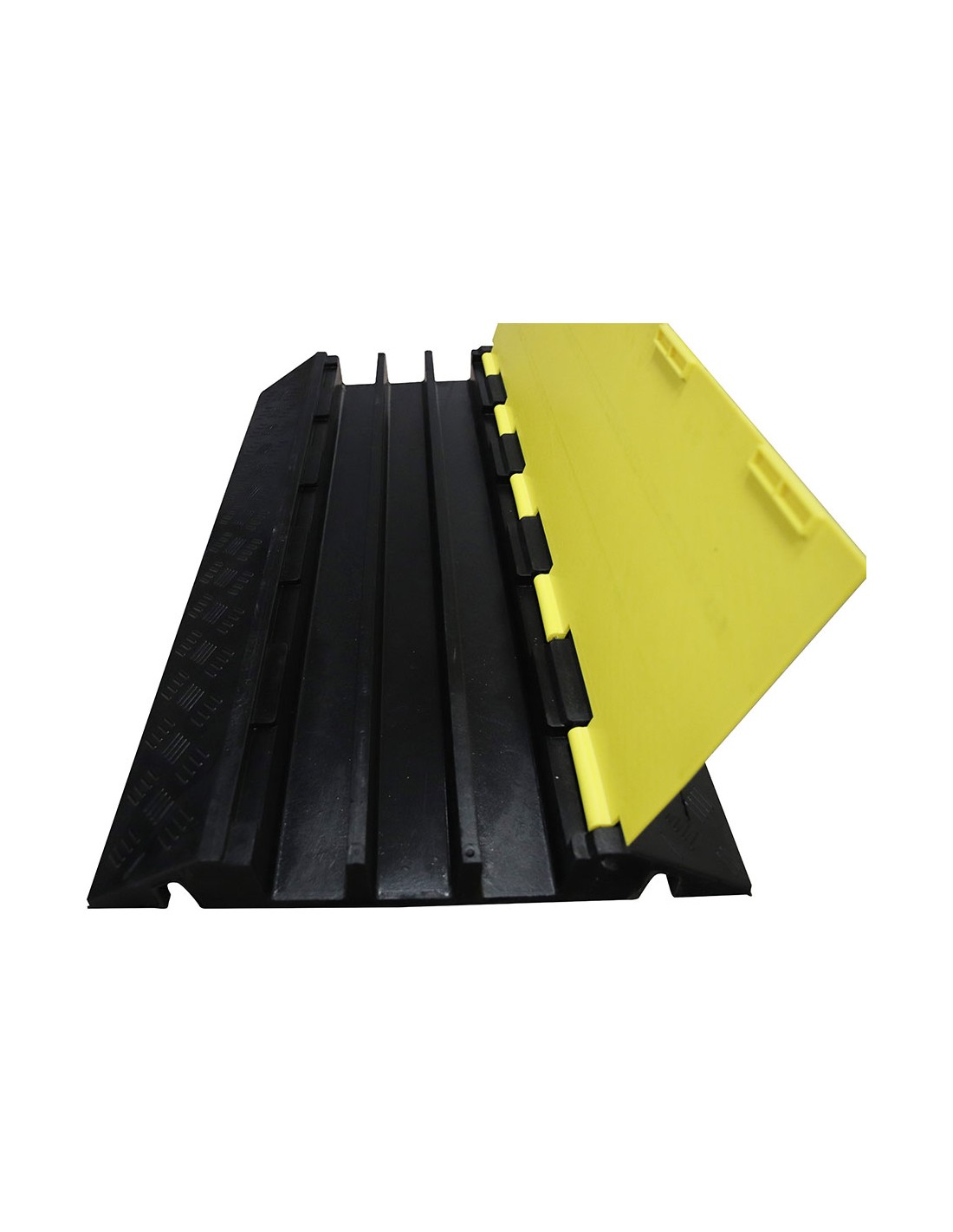 Protector pasacable 900x500x70mm.normaluz. protector de cables de caucho, ideal para cableado provisional evitando posibles daños tanto a personas como vehículos. ferias,conciertos,mercados,obras, eventos etc. con tapa superior abisagrada.3 carriles interiores de gran capacidad.fácil instalación.conforme en 61537/2007:b2. peso:17kg.
