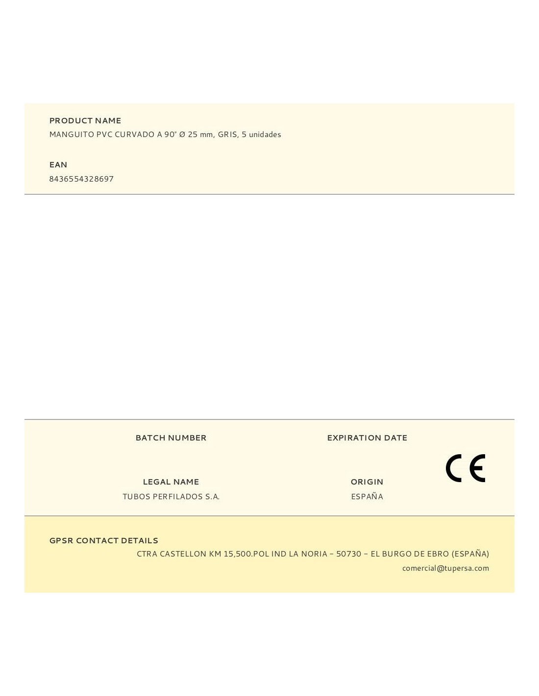 Manguito pvc curvado a 90° para unión de tubos rigidos de pvc ø 25 mm, gris, 5 unidades